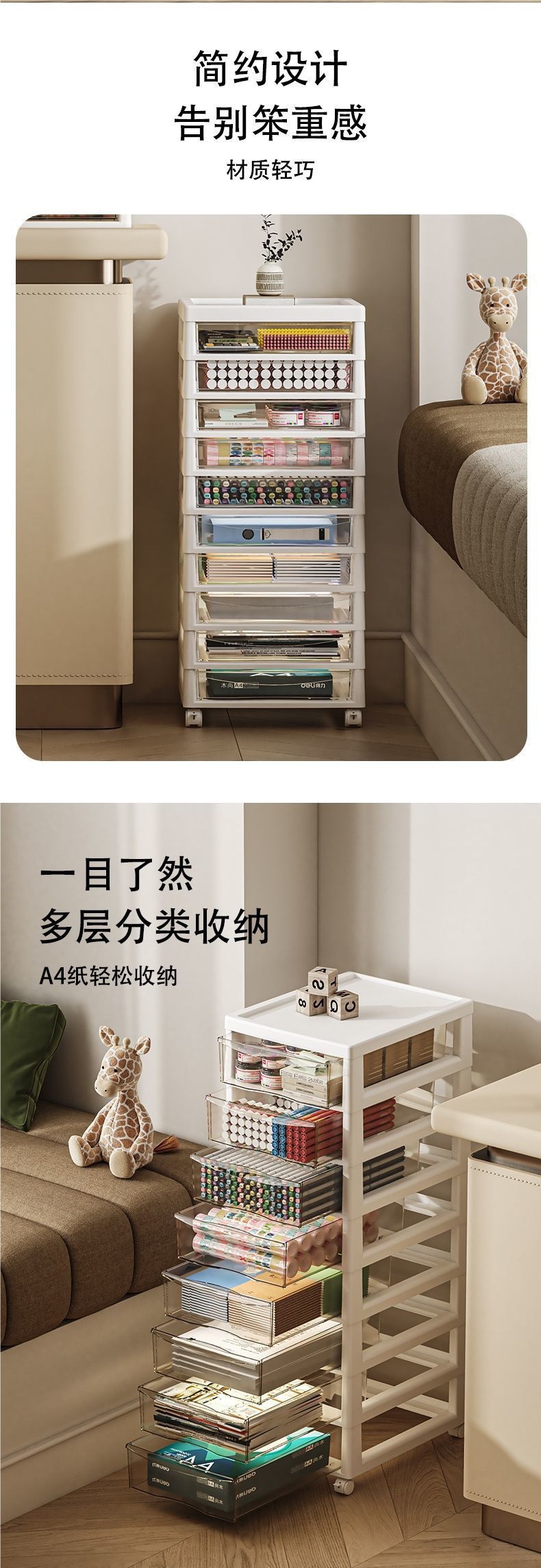 사무실 책상 수납함 서랍형 수납장 책상 아래 4개의 파일 수납선반 문구류 수납 정리함스토어 가기