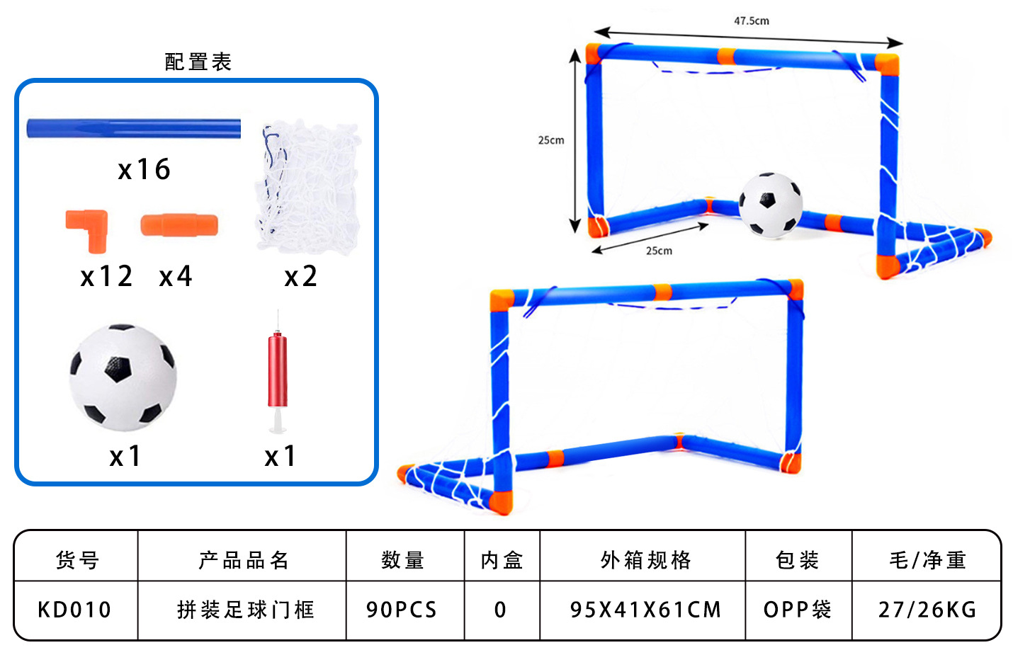 • 공 1개 + OPP 가방이 포함된 축구 2골 조립