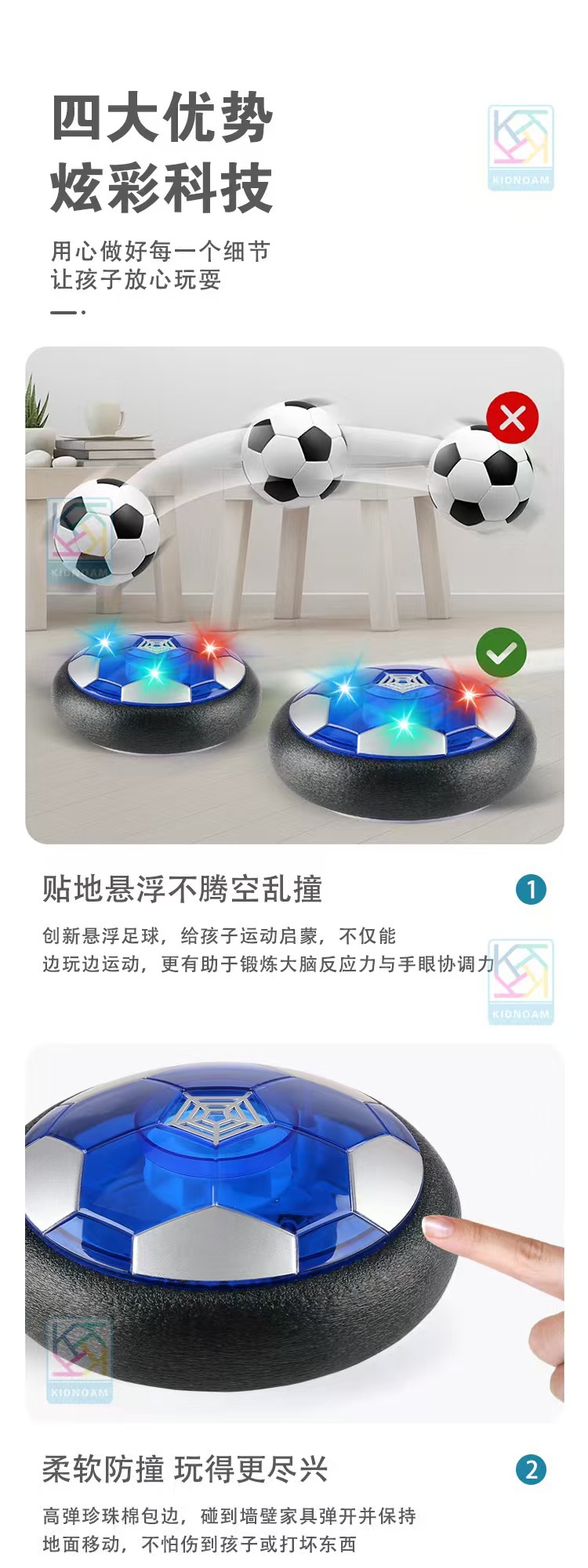 • [충전식 모델] 공중에 떠 있는 축구 파란색 표면 조명 + 음악 + 축구 목표 + 색상 상자