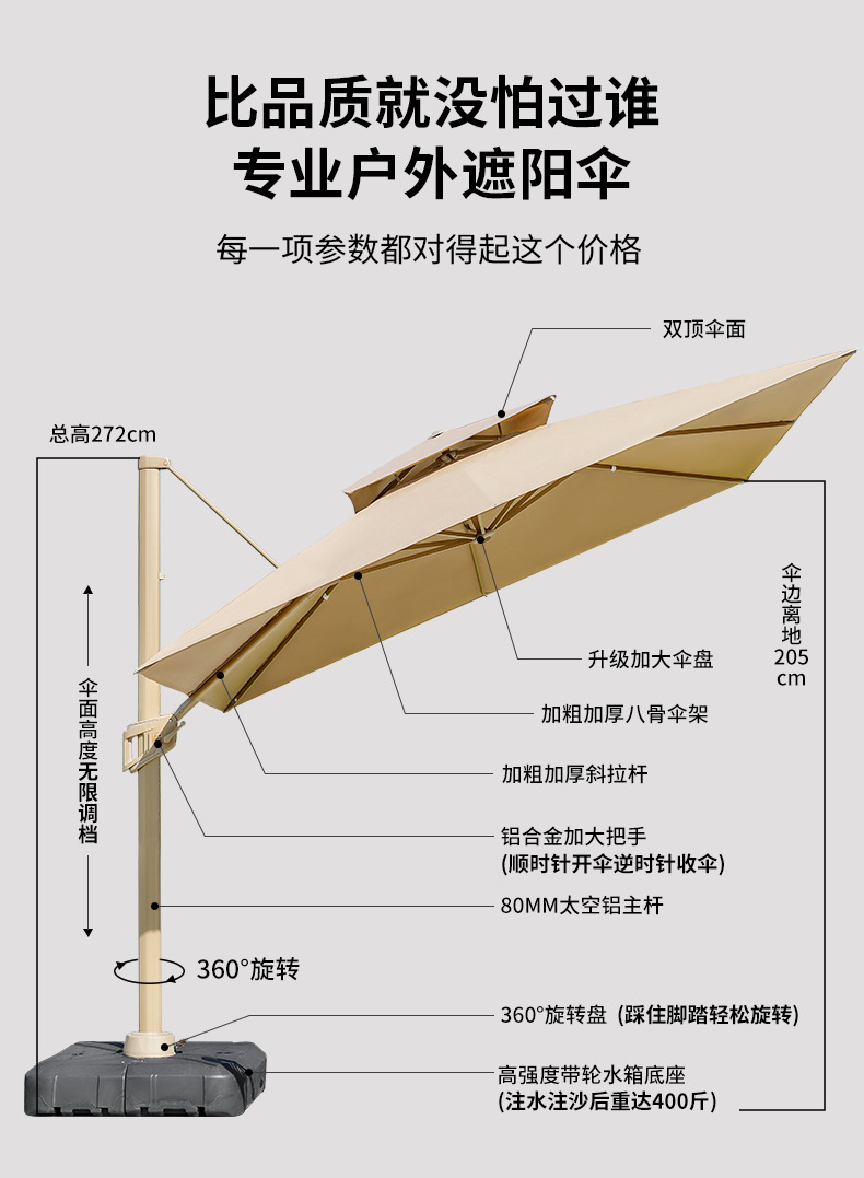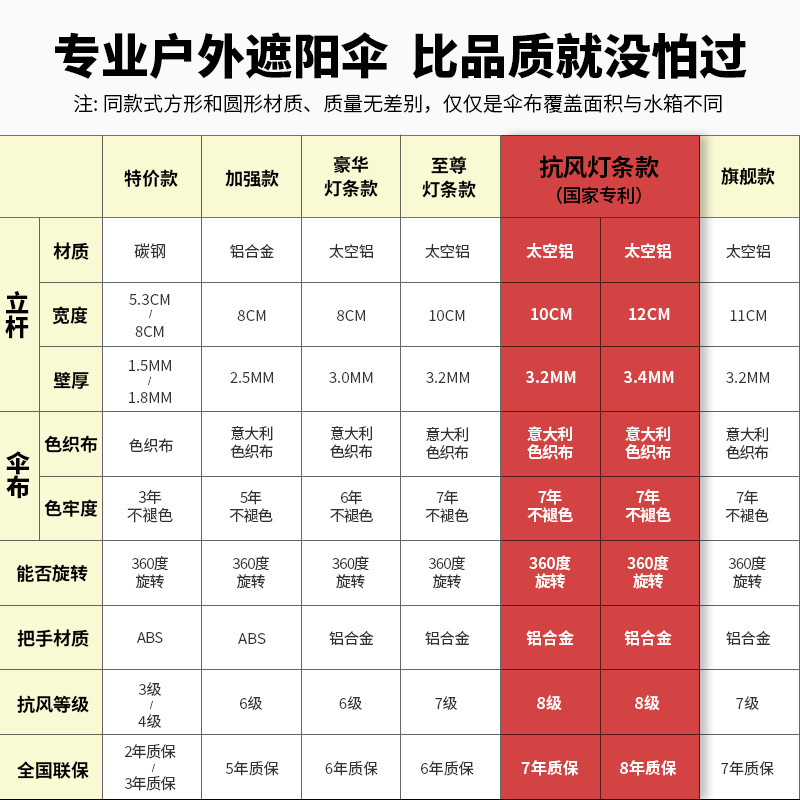 • 고급 특허 램프 조항 - 8CM 공간 알루미늄 우산 기둥 [국가 특허 크로스 더블 붐] [완전 밝고 따뜻한 라이트 스트립]↓↓↓