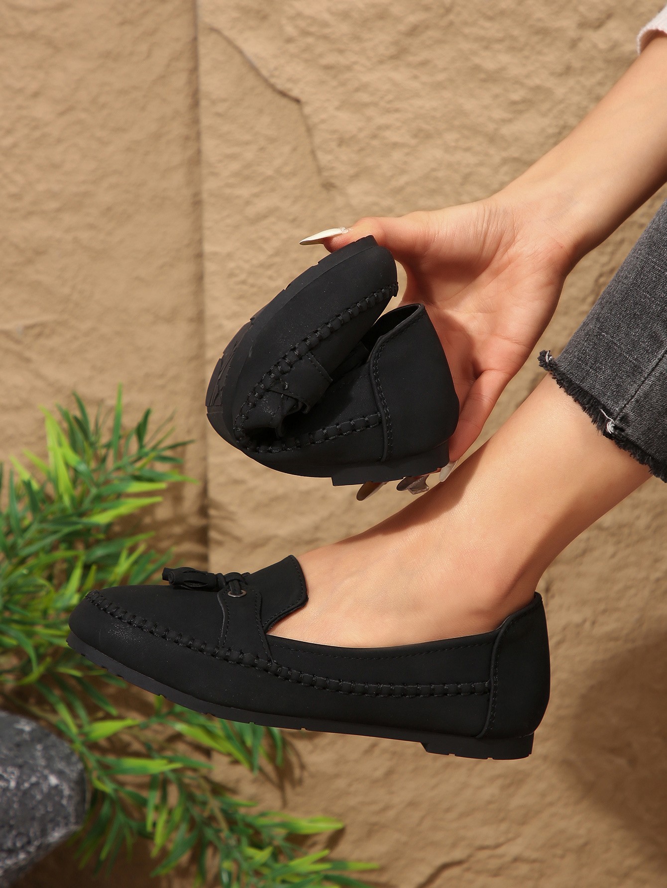 국경 간 대형 로퍼 독립 스테이션 인기 2025 봄, 가을 새로운 대외 무역 여성 슬립 온 플랫 슈즈스토어 가기