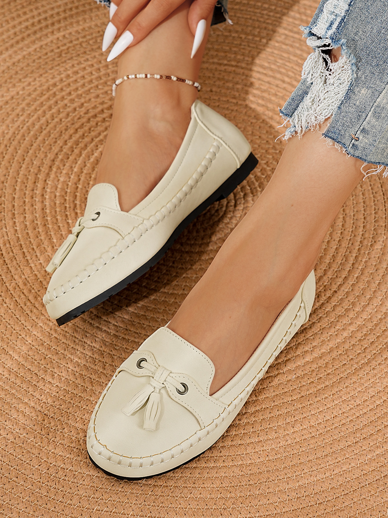 국경 간 대형 로퍼 독립 스테이션 인기 2025 봄, 가을 새로운 대외 무역 여성 슬립 온 플랫 슈즈