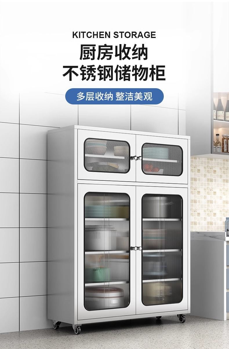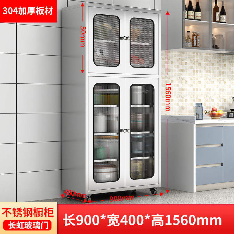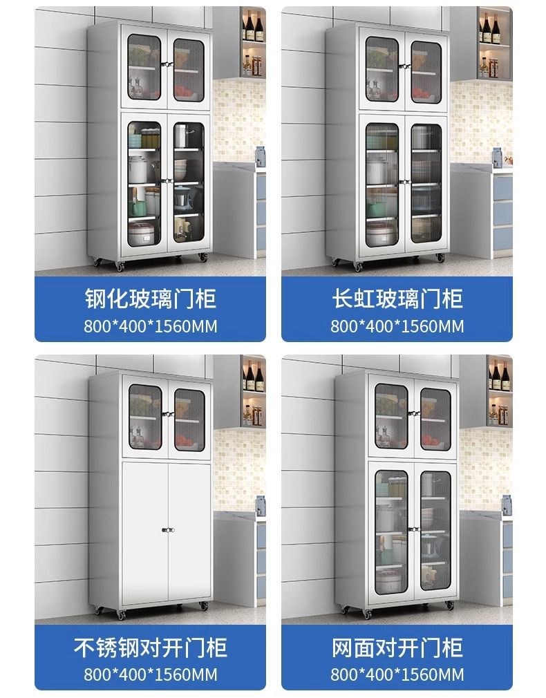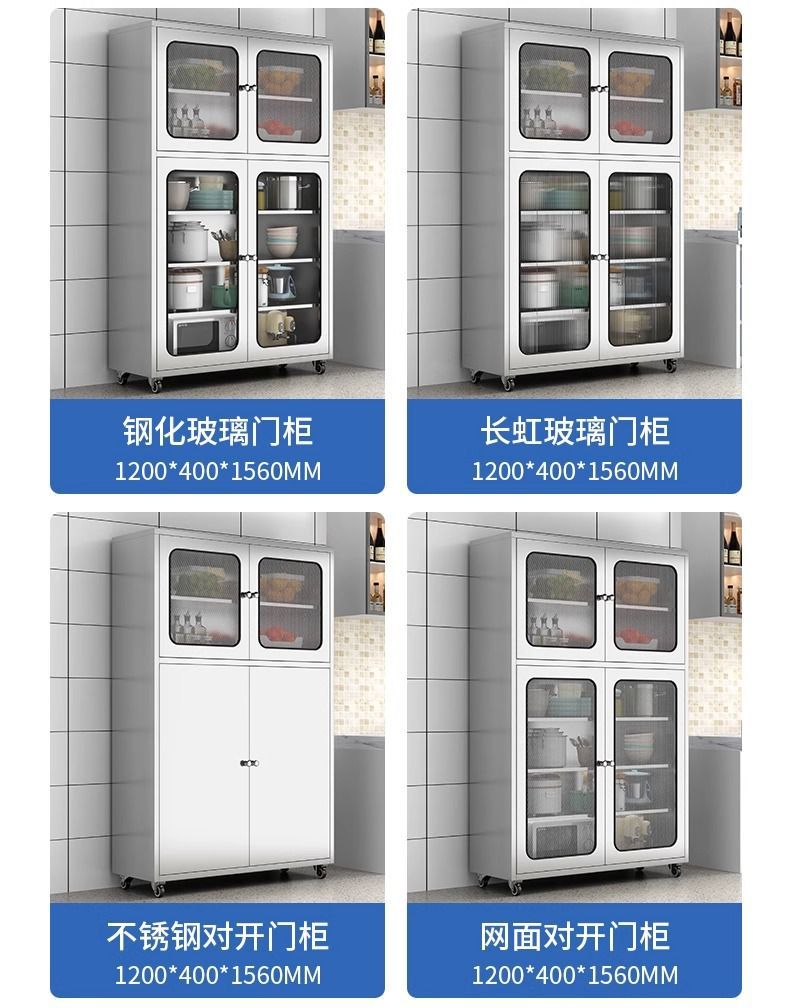 304 두꺼운 스테인레스 스틸 주방 찬장 홈 주방 캐비닛 메쉬 도어 찬장 보관 캐비닛 냄비 보관 캐비닛