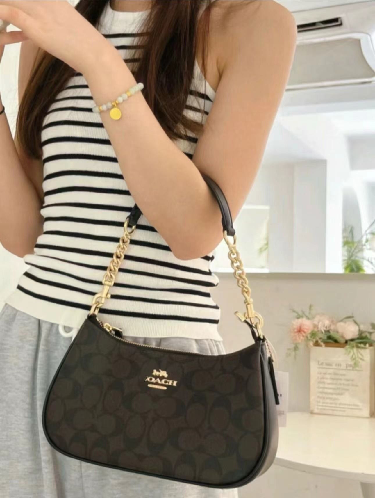 코치 신작 여성용 가방 teri25 겨드랑이 가방 클래식 노안 패션 싱글 숄더 크로스 바디 휴대용 마작 가방 초승달 가방스토어 가기