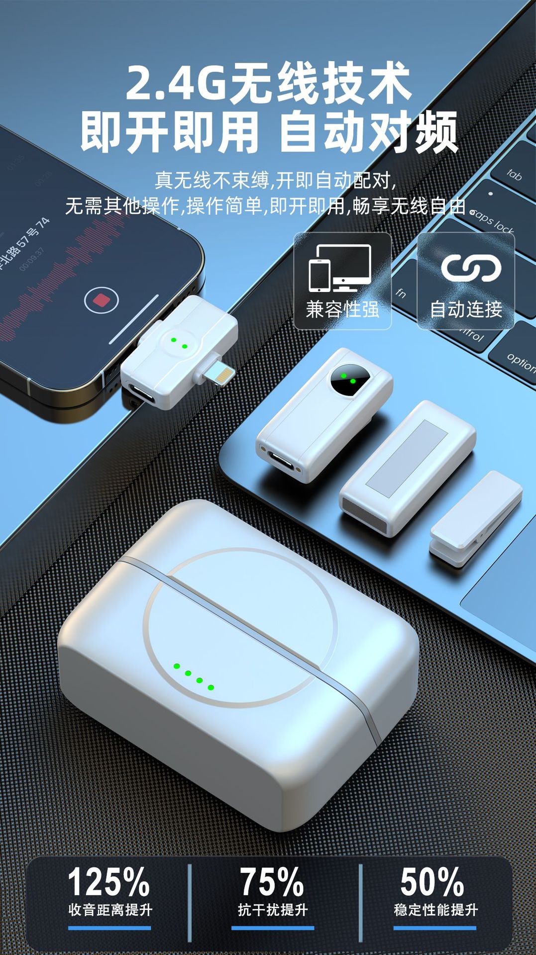 크로스보더 무선 라발리에 마이크 개인 모델(디지털 디스플레이 라발리에 마이크 포함) 생방송 배터리 수명이 긴 충전식 라이브 시리즈스토어 가기