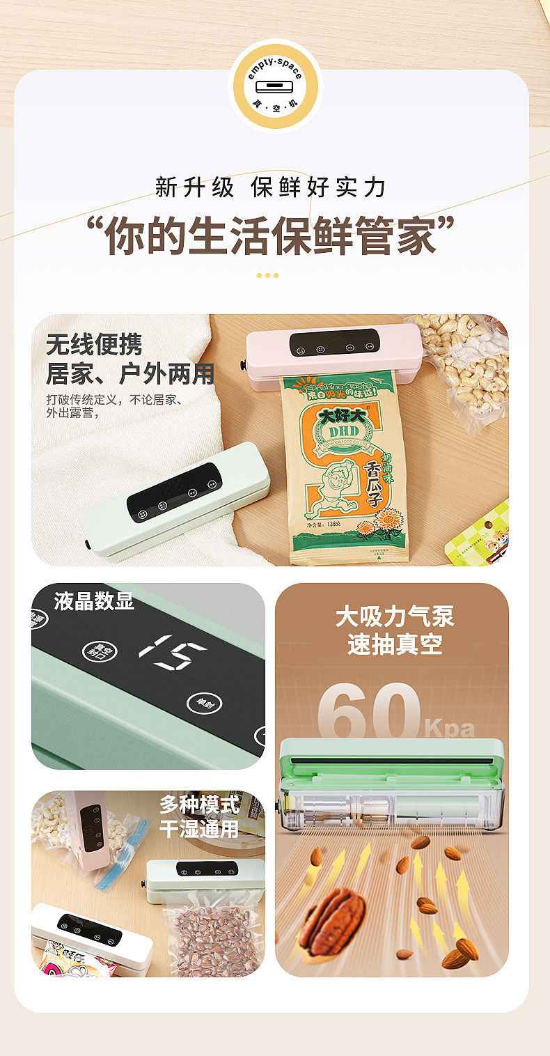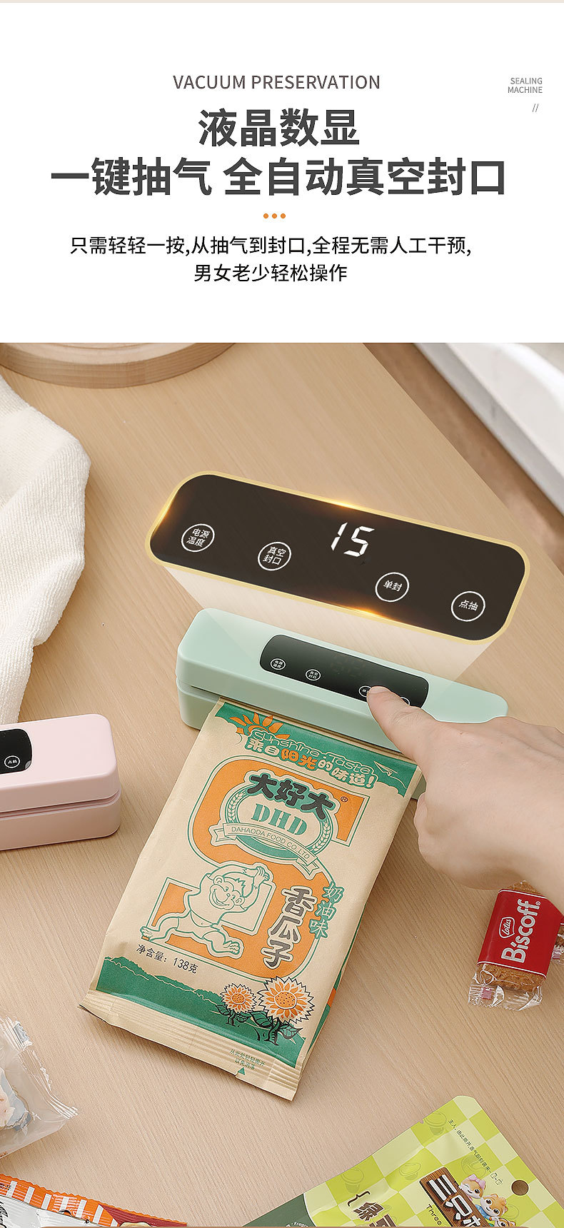 국경 간 소형 진공 밀봉 기계 가정용 식품 봉투 진공 신선 유지 밀봉 플라스틱 밀봉 기계 자동 압축 포장스토어 가기