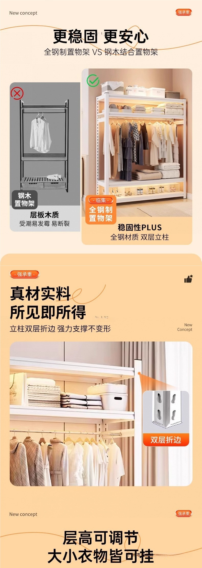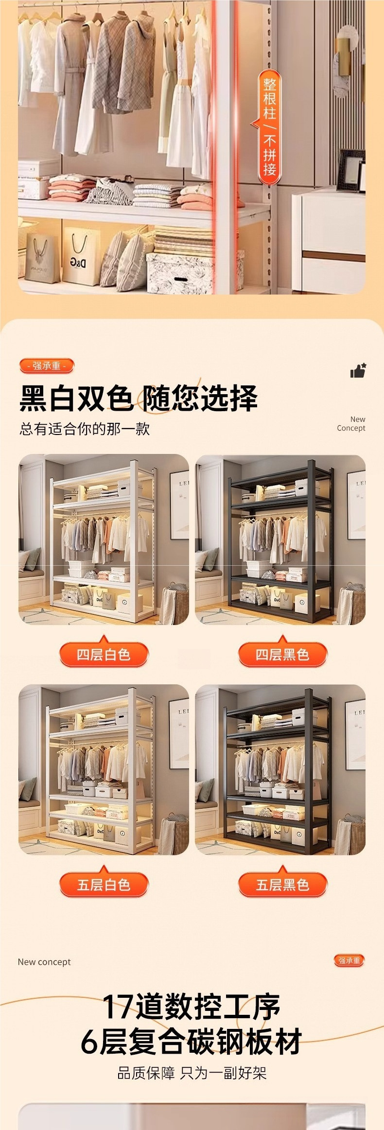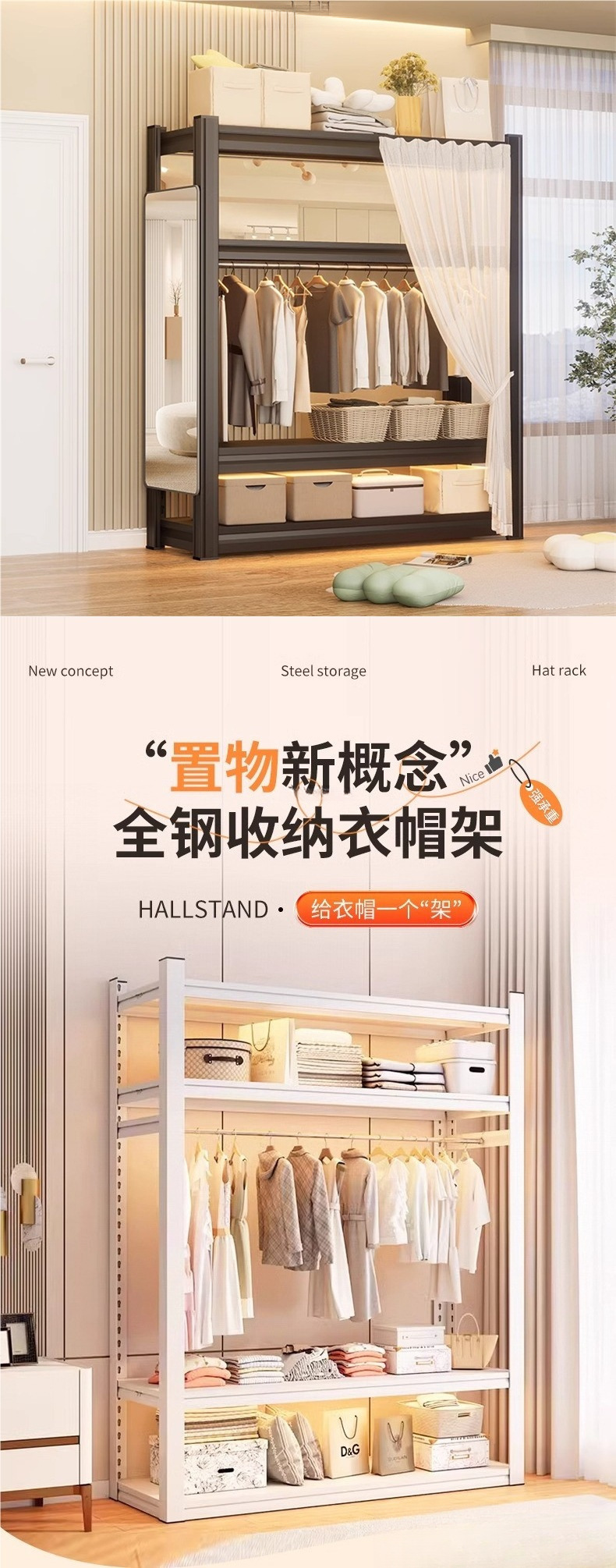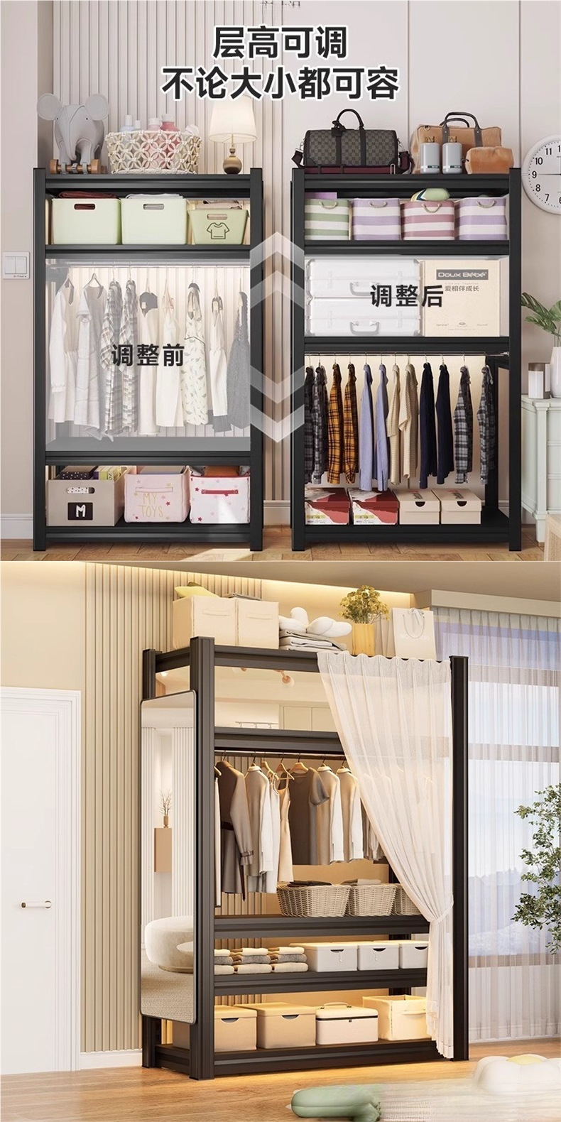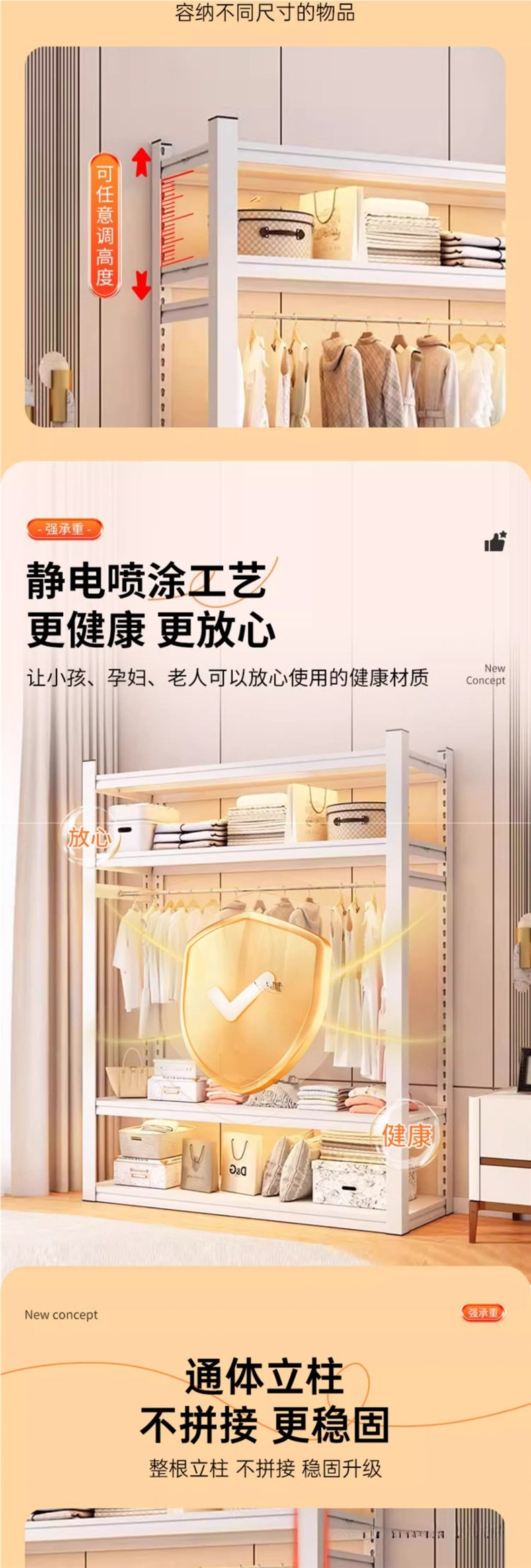 가정용 선반, 옷장, 간단한 조립, 개방형 침실 옷걸이, 가정용 발코니 수납 철제 선반
