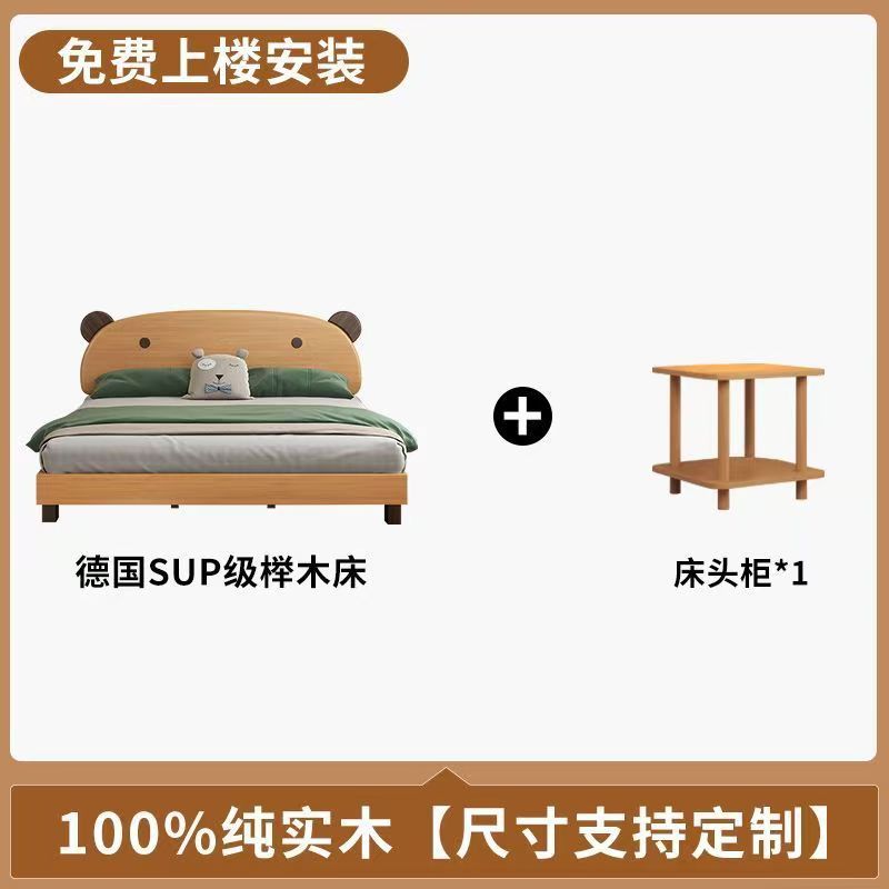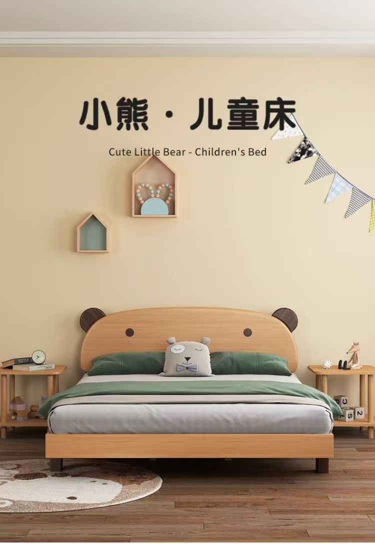 어린이 나무 침대 현대 어린이 침대 홈 간단한 만화 더블 침대 곰 너도밤 나무 북유럽 침대 옆 단단한 나무 침실