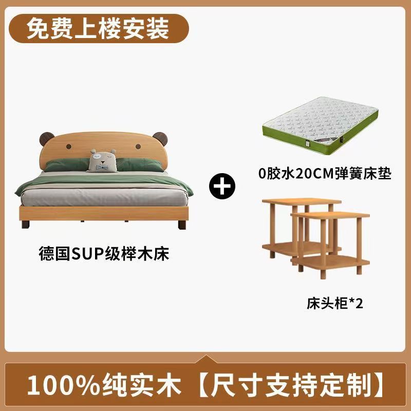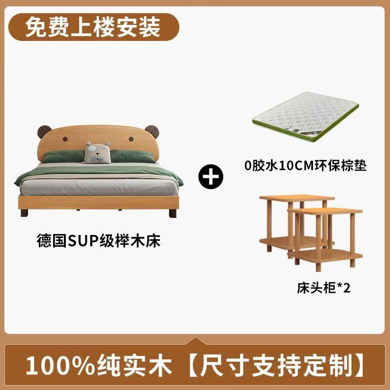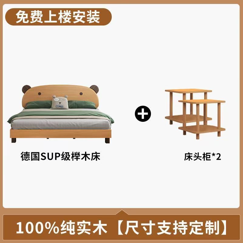 어린이 나무 침대 현대 어린이 침대 홈 간단한 만화 더블 침대 곰 너도밤 나무 북유럽 침대 옆 단단한 나무 침실스토어 가기