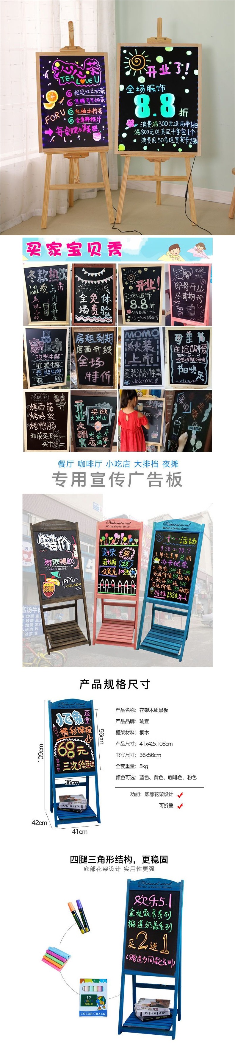 작은 칠판 스탠드 유형 홈 크리 에이 티브 드로잉 보드 수직 상점 광고 보드 어린이 쓰기 보드 분필 칠판 교수형