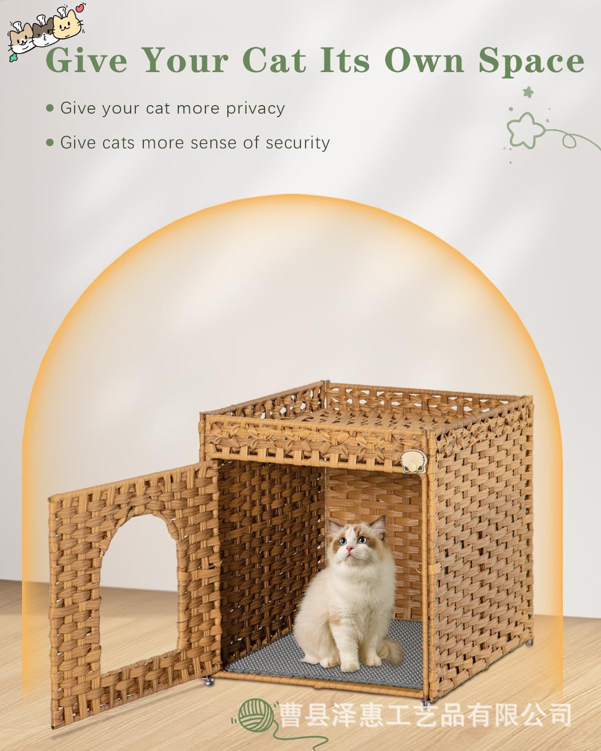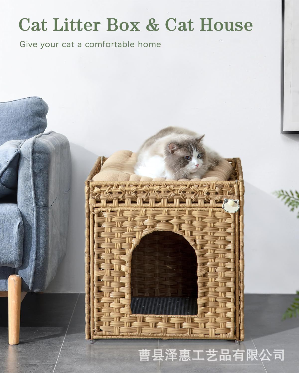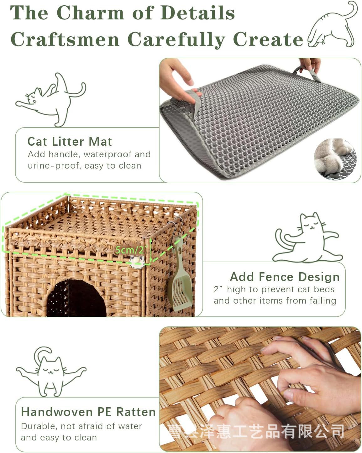 국경 간 짠 고양이 쓰레기 상자 손으로 짠 등나무 고양이 집 거실 침실 고양이 개집 짠 고양이 쓰레기 상자
