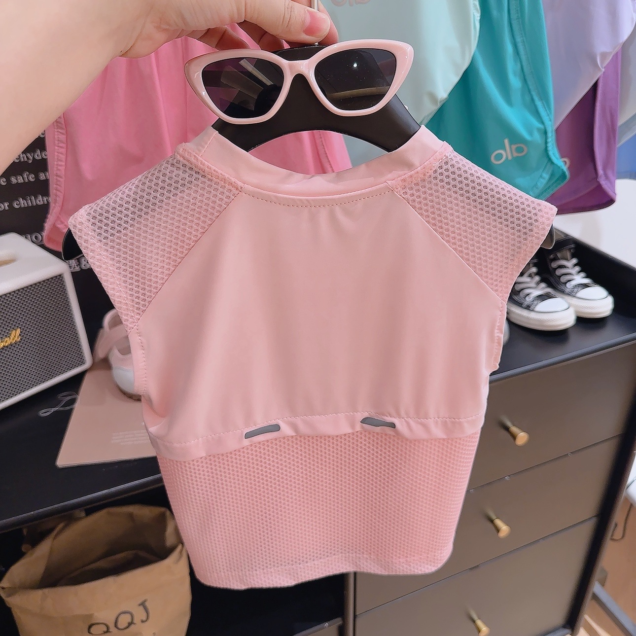 2025 여름 새 조끼 세트 나일론 얼음 느낌 빠른 건조 메쉬 통기성 캐주얼 민소매 조끼 세트스토어 가기