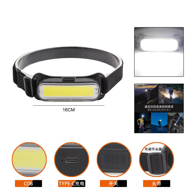 국경 간 새로운 다기능 헤드 라이트 야외 cob 야간 달리기 낚시 수리 헤드 라이트 작업 조명 USB 충전