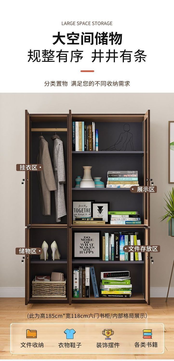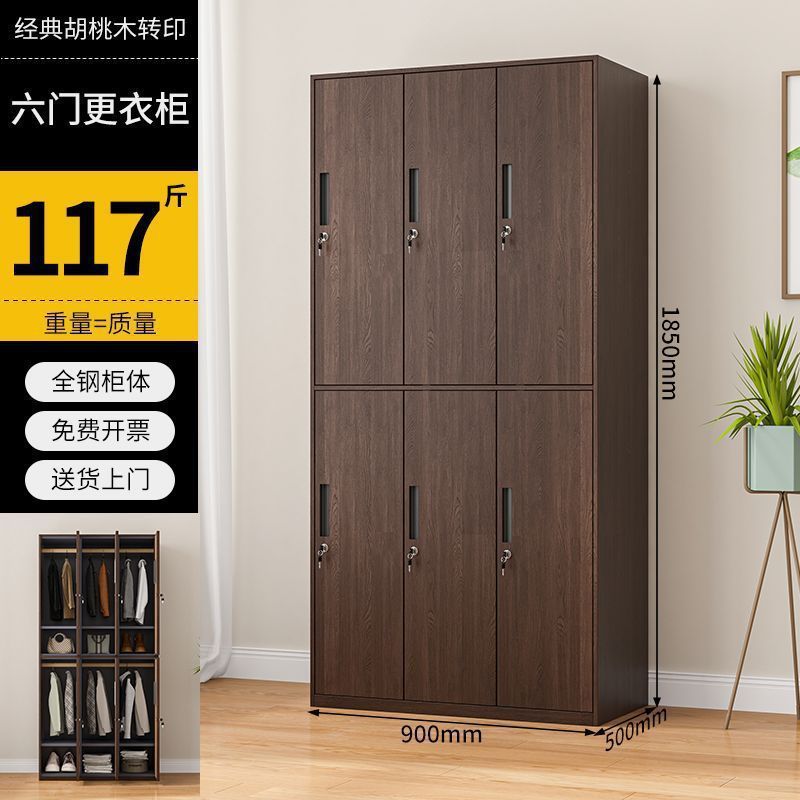 • 호두나무 곡물 6도어 옷장-스마트 잠금 장치