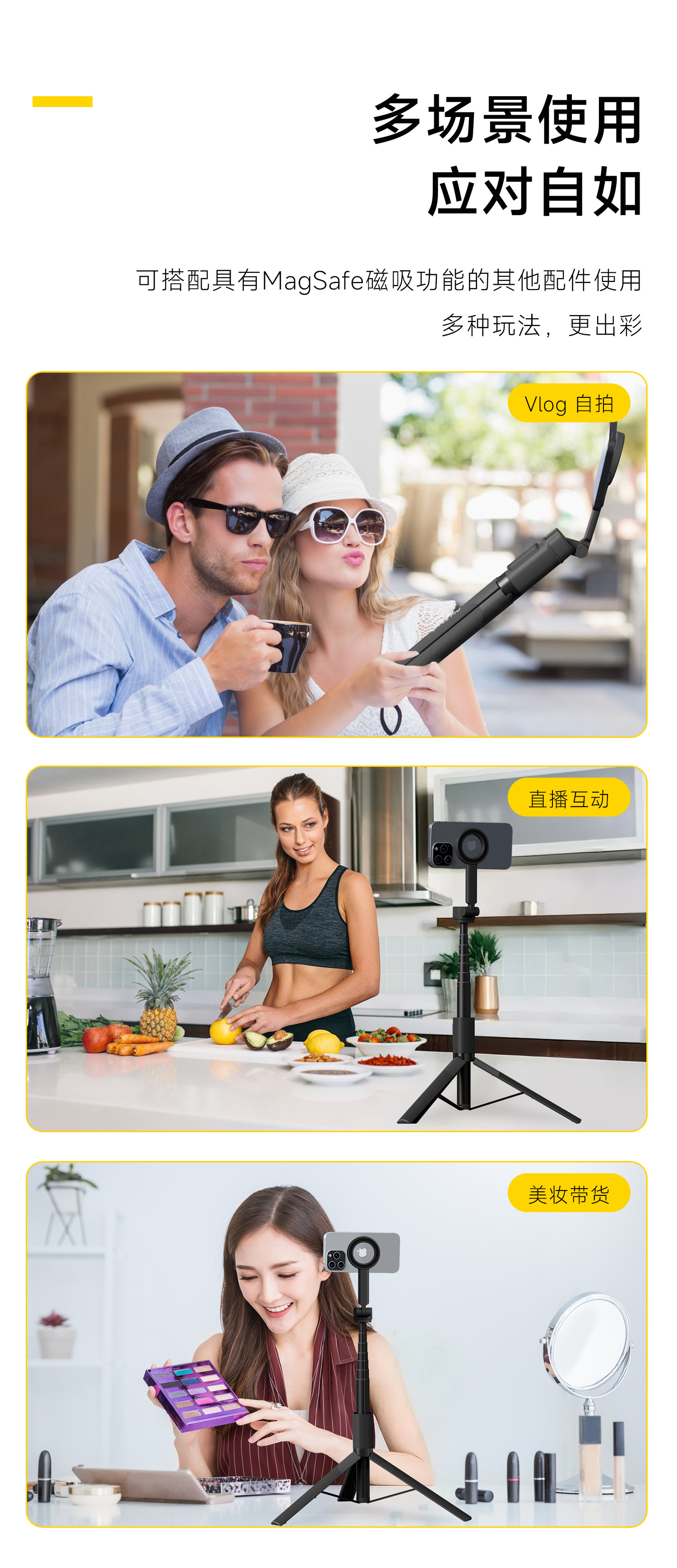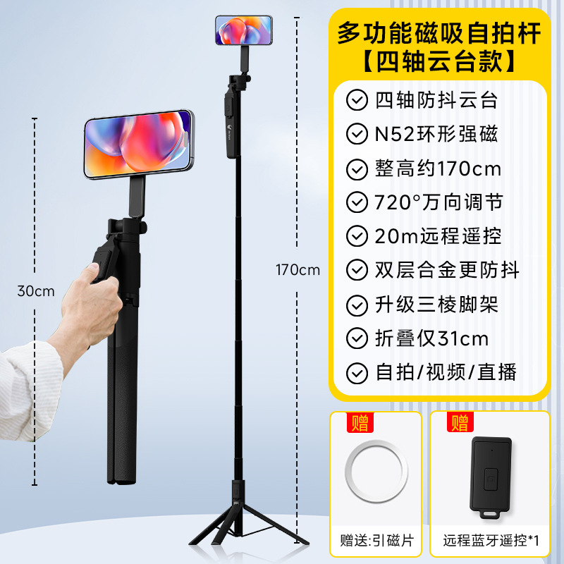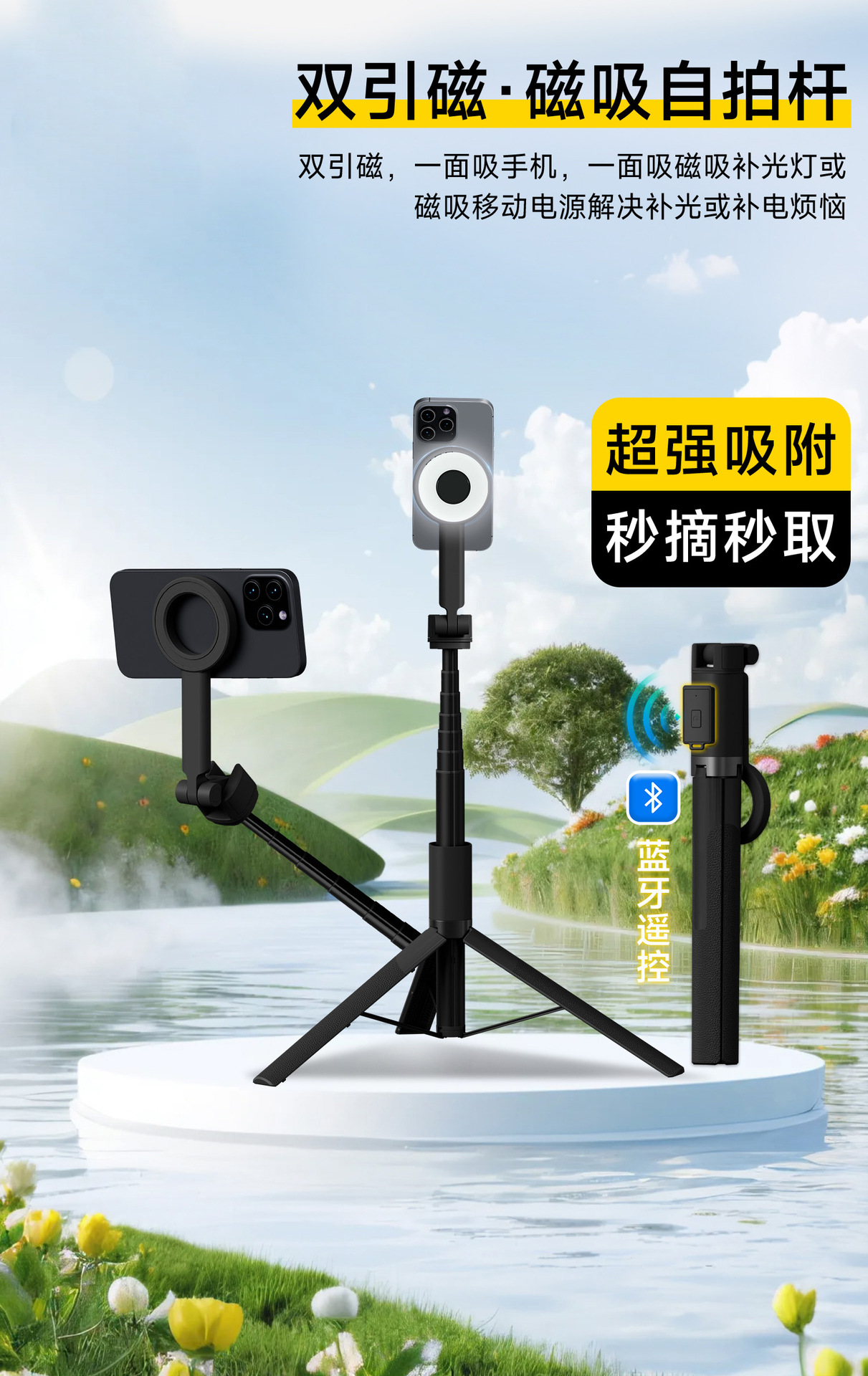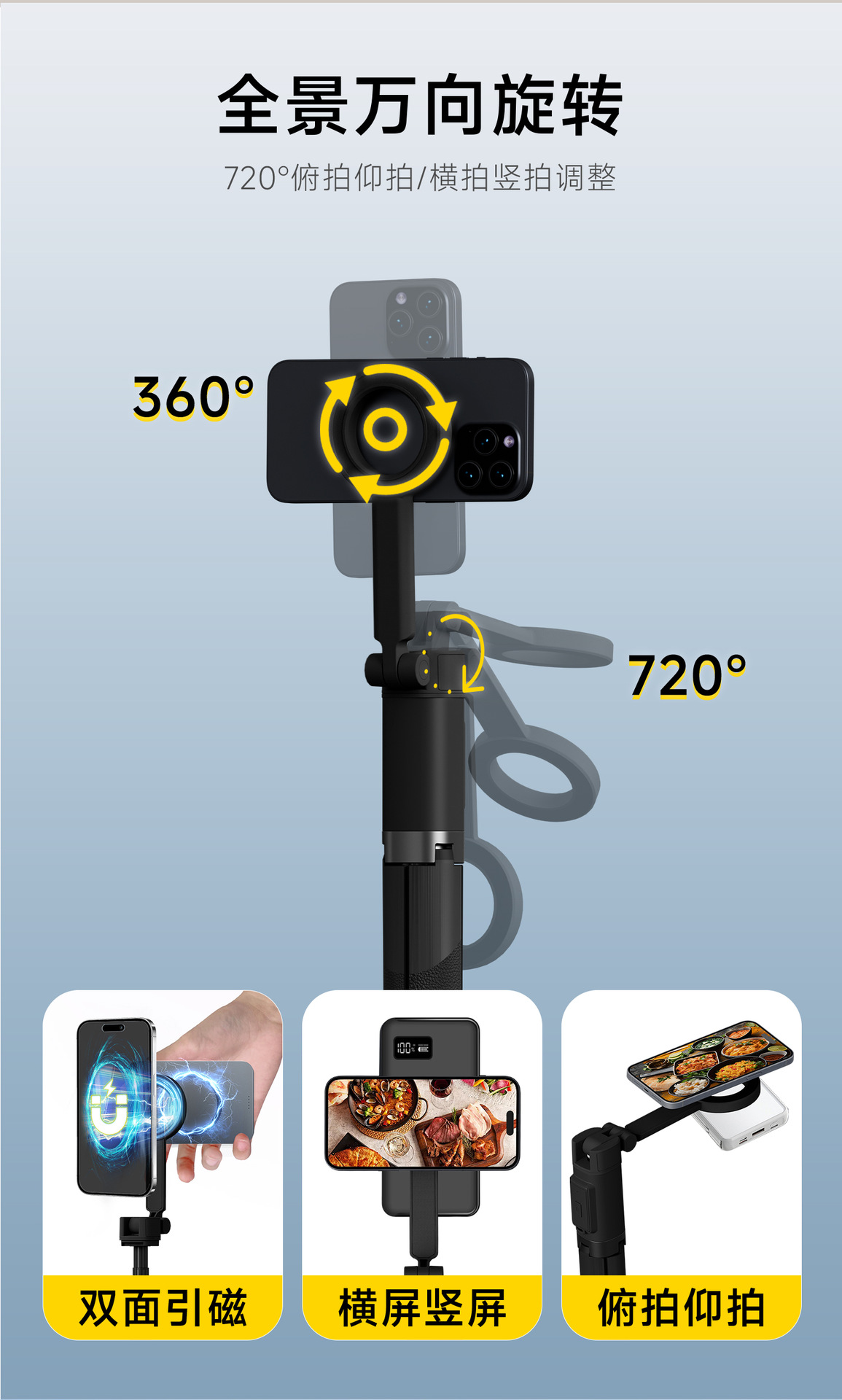 • T6 자기 셀카봉 블랙 +360 ° 자기 회전 조명