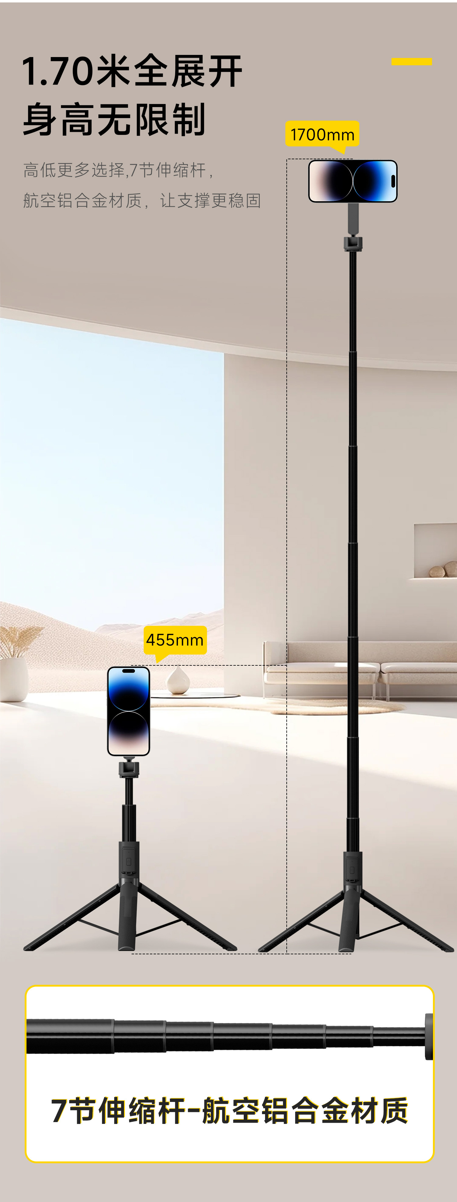 • T6C 자기 피치 360 ° 회전 셀카봉 블랙