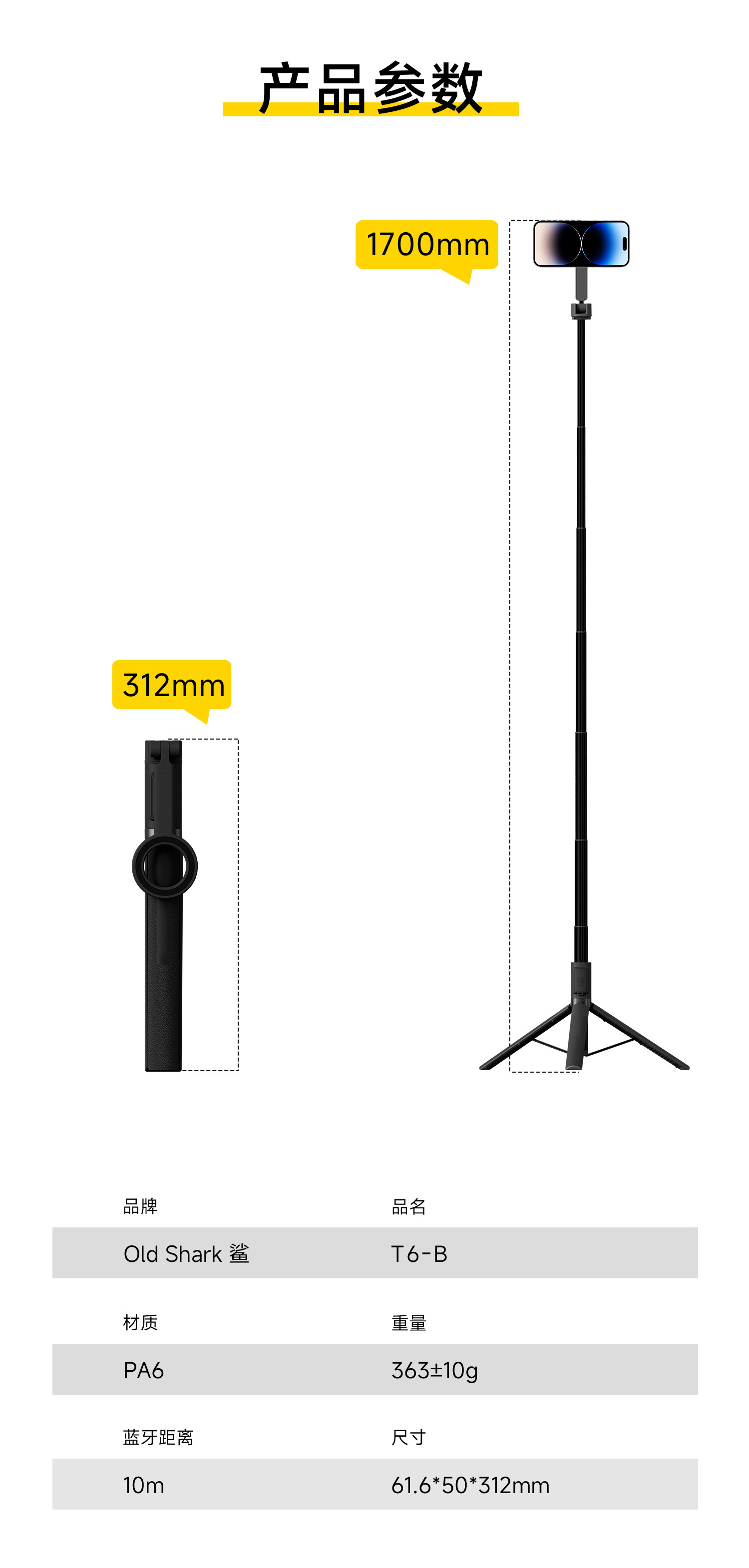 국경 간 신제품 휴대 전화 블루투스 자기 셀카 스틱 T6 휴대용 범용 플로어 스탠딩 라이브 방송 스탠드 삼각대 셀카 스틱스토어 가기