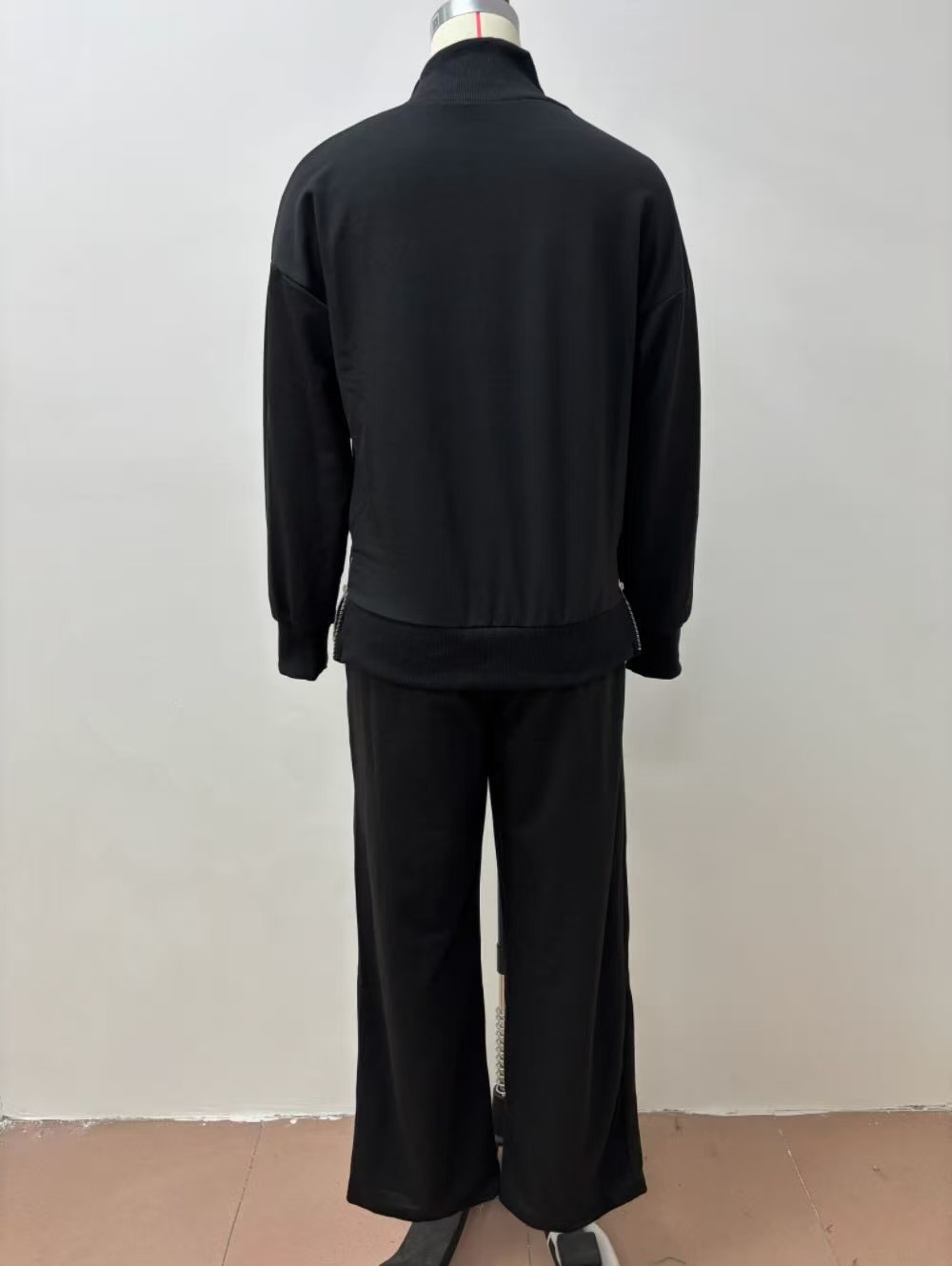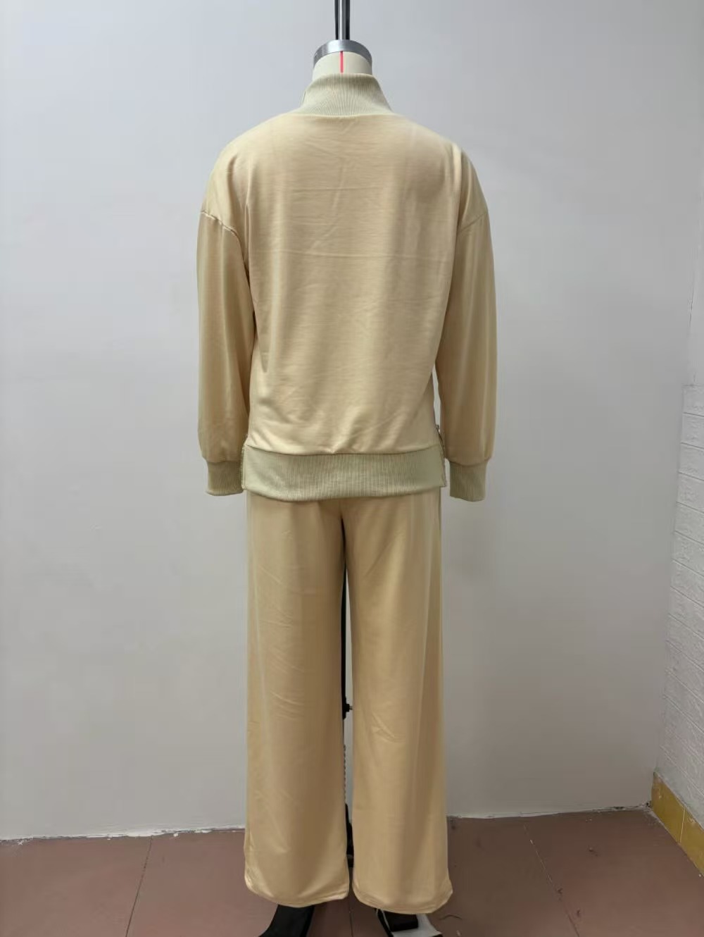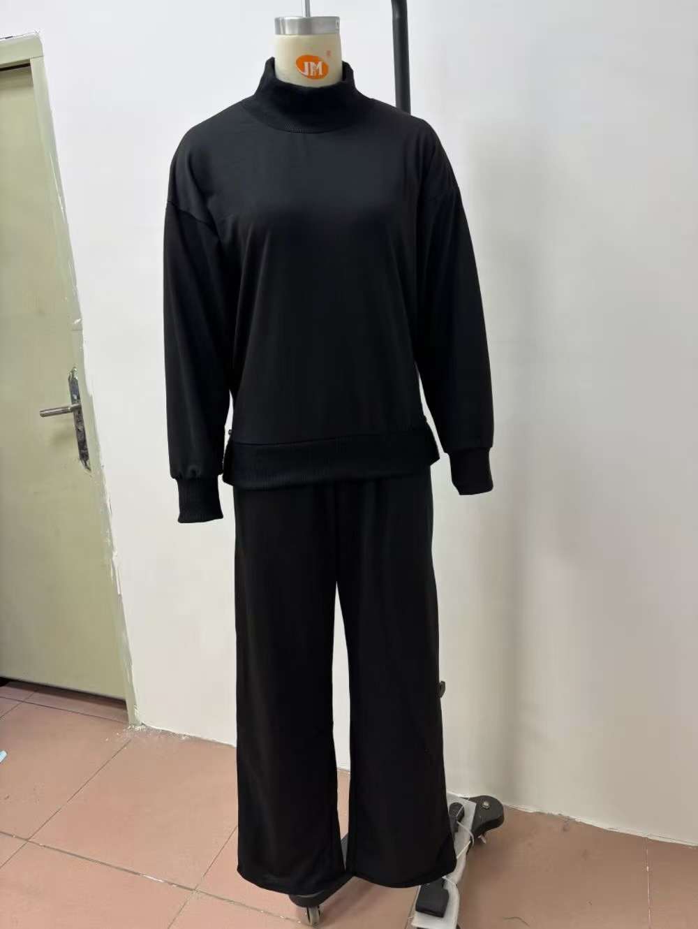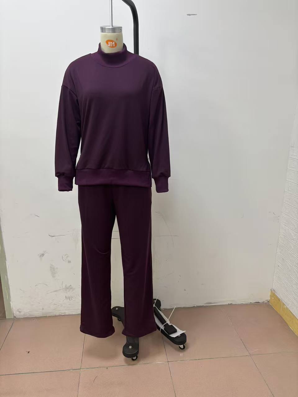 국경 간 2025 유럽과 미국의 봄, 가을 새로운 긴팔 스웨트 슈트 라운드 넥 캐주얼 루즈 캐주얼 바지 여성용 투피스 세트