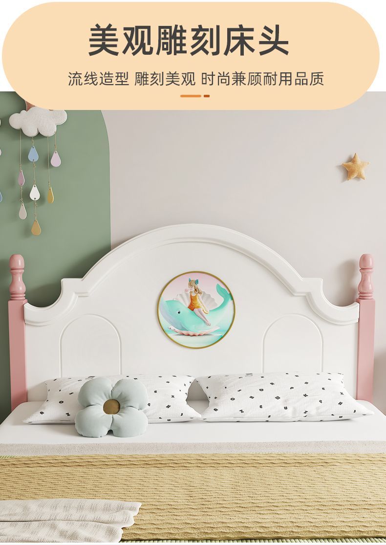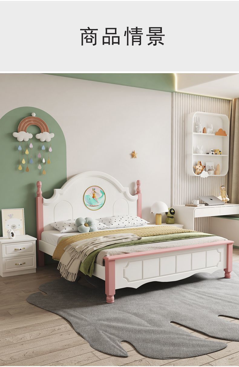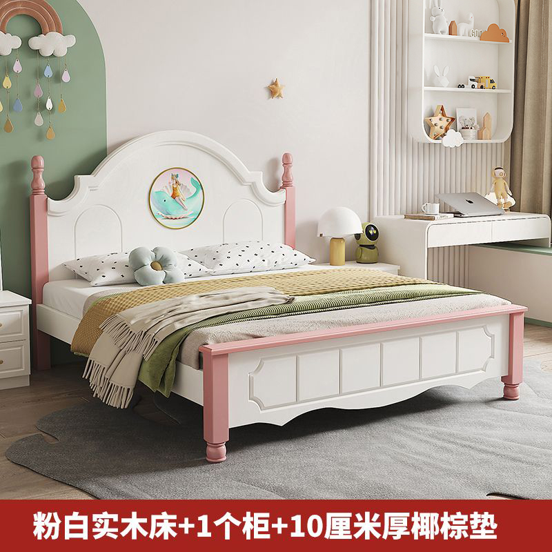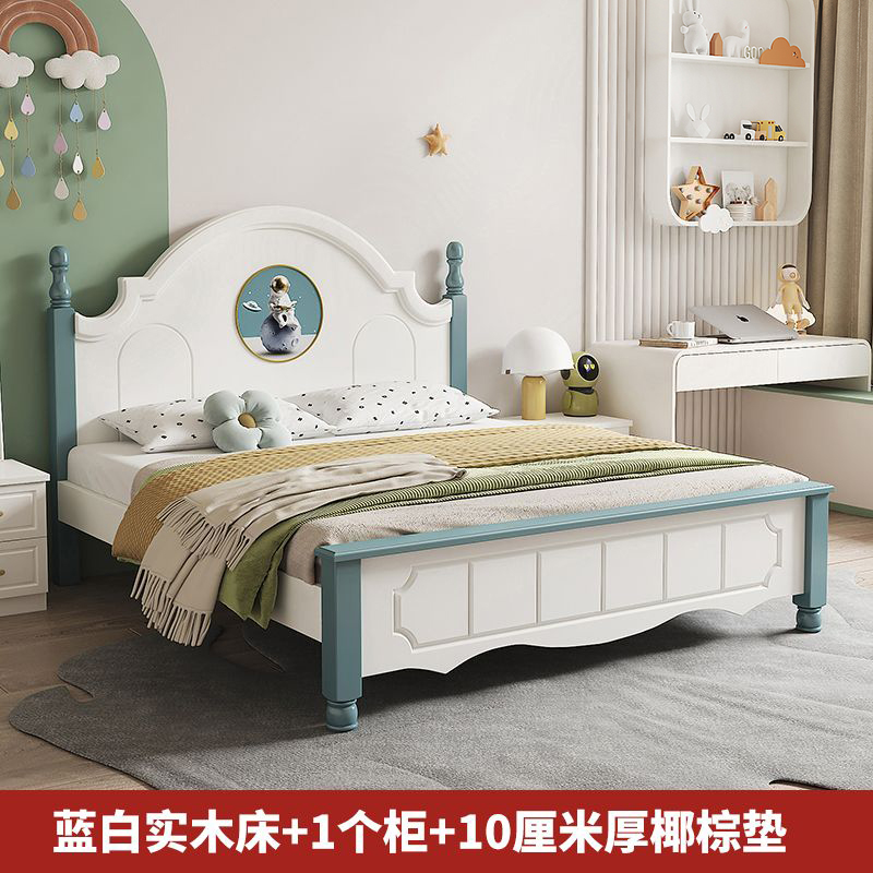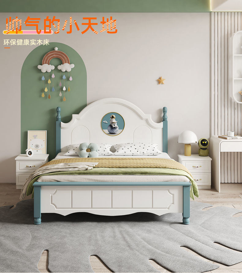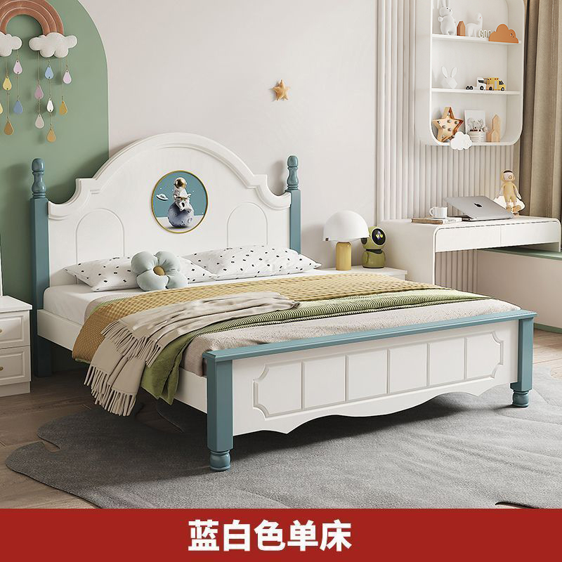 단단한 나무 어린이 침대 소년 싱글 침대 1.5m 유럽 스타일 1.2m 침실 침대 미국 십대 소녀 공주 침대스토어 가기