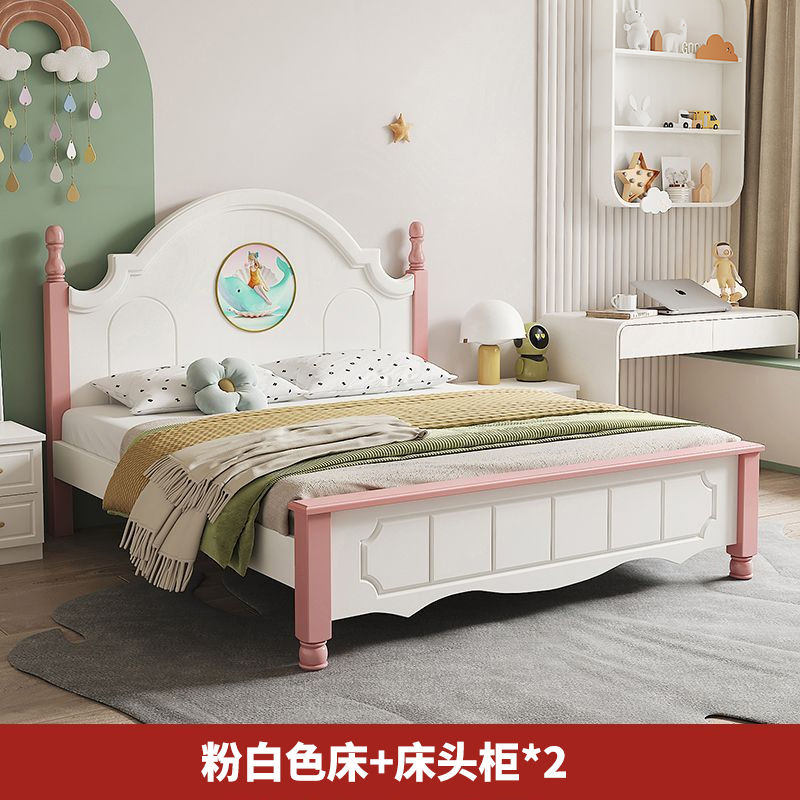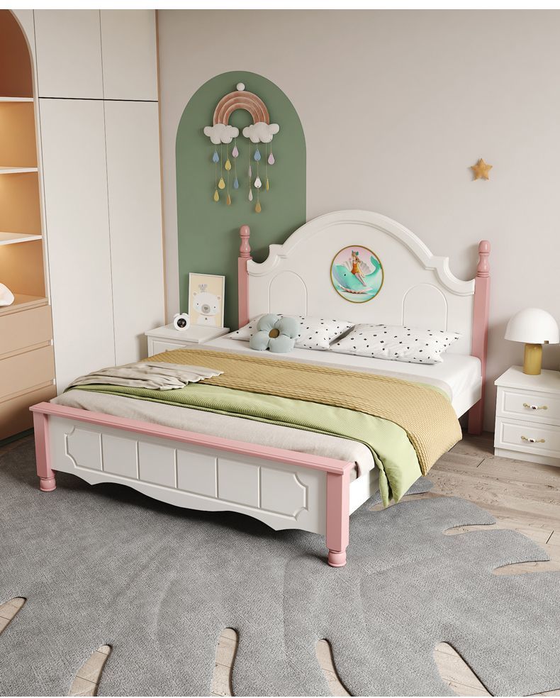 단단한 나무 어린이 침대 소년 싱글 침대 1.5m 유럽 스타일 1.2m 침실 침대 미국 십대 소녀 공주 침대
