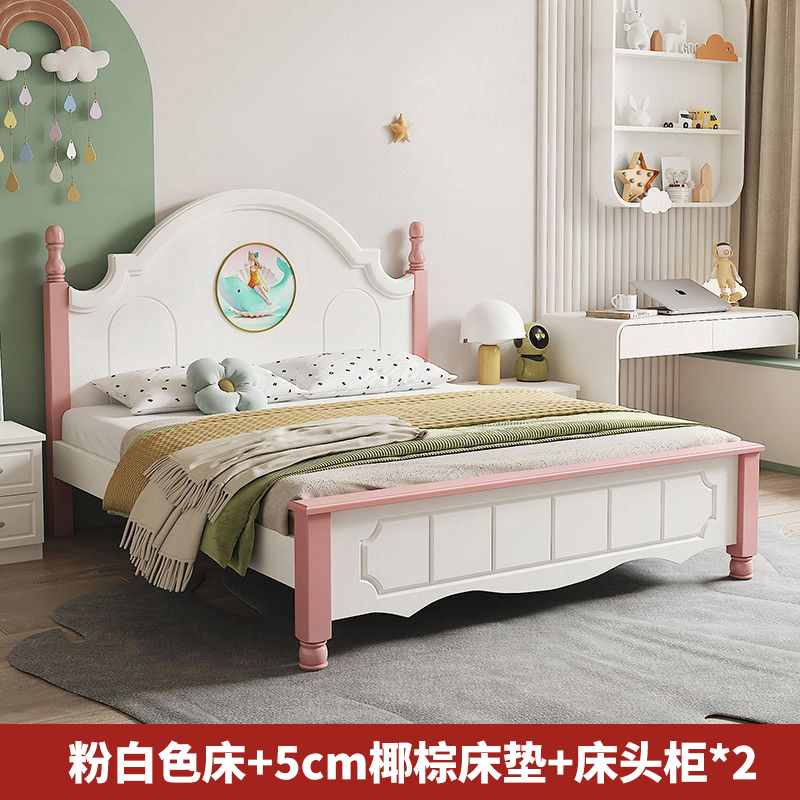 • 핑크 침대 + 5cm 코코넛 야자 매트리스 + 침대 옆 탁자*2 [설치 포함]