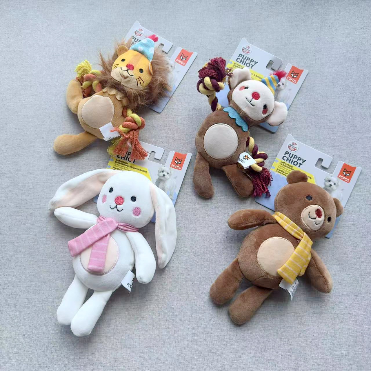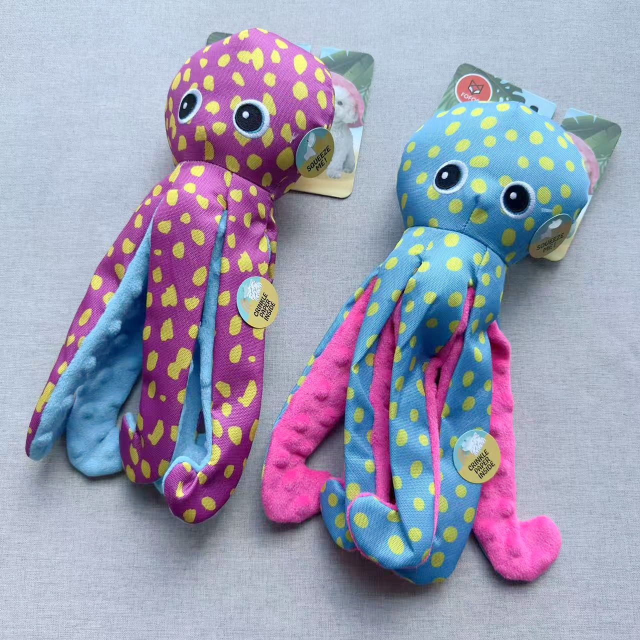 두 마리의 여우 대형 개 장난감 소리가 나는 문어 물림 방지 치아 청소 대화형 애완 동물 장난감 재고 있음 애완 동물 용품스토어 가기
