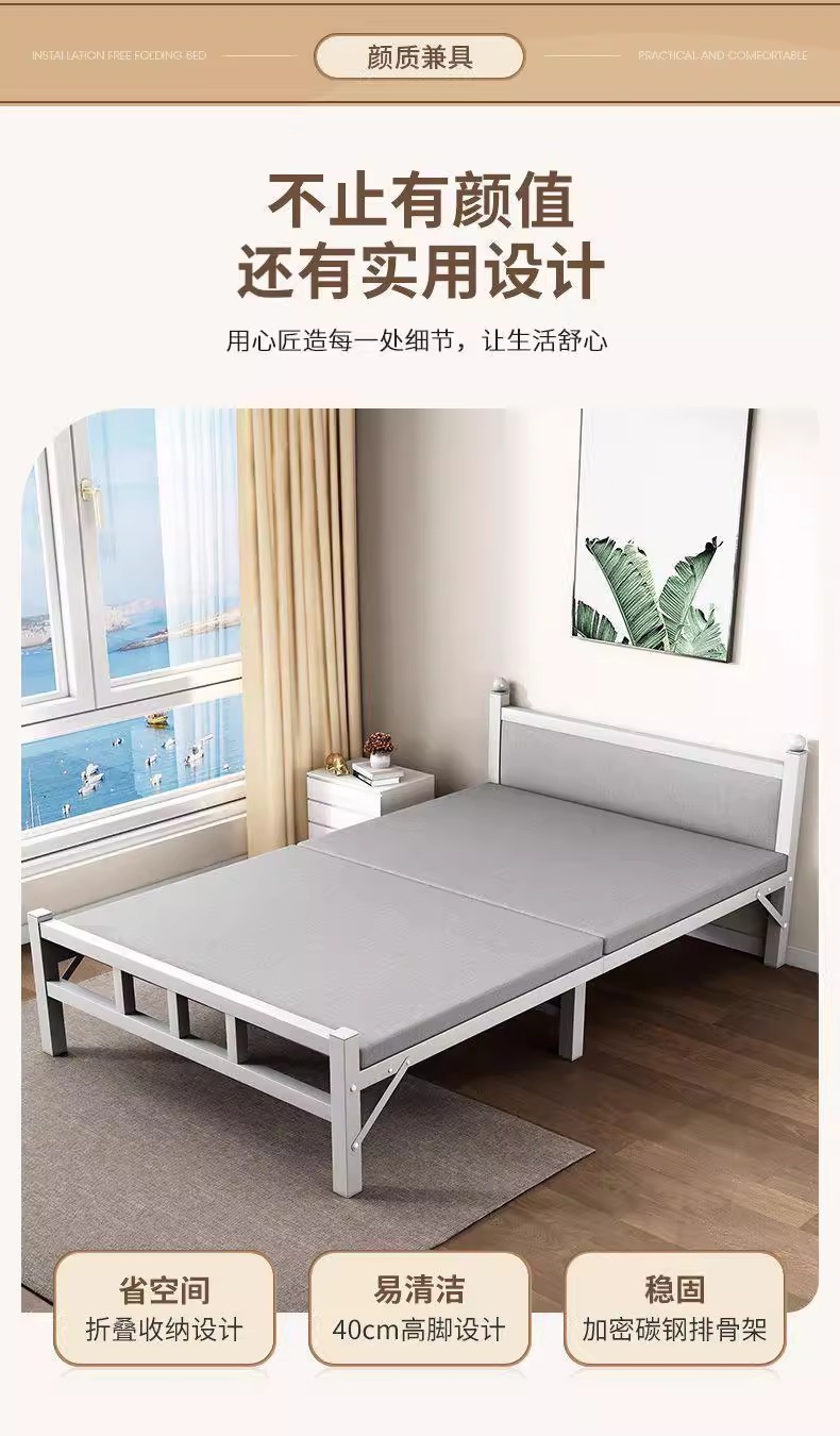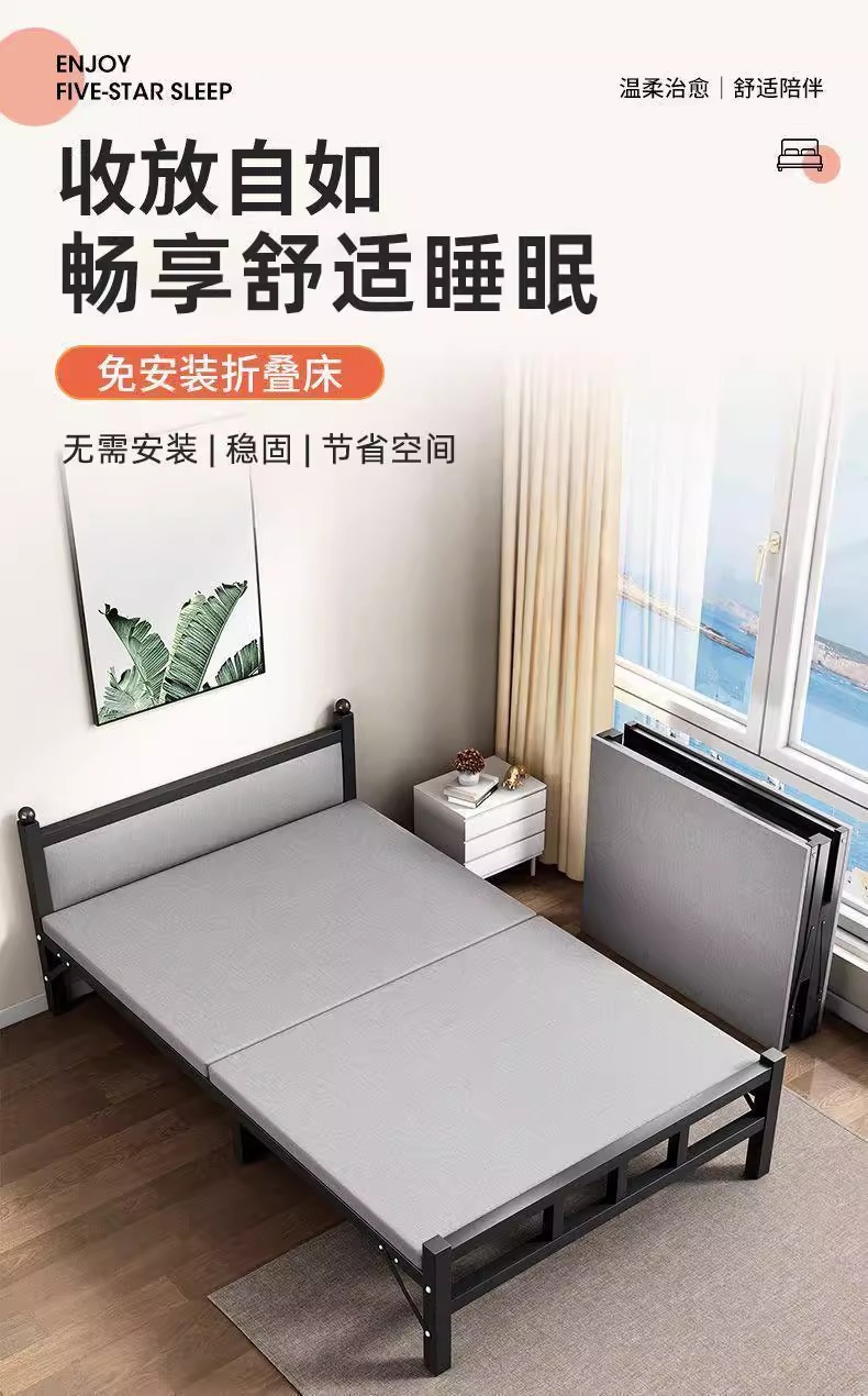 접이식 침대 싱글 침대 가정용 간이 사무실 동반자 점심 시간 낮잠 나무 침대 임대 주택 성인 철제 침대스토어 가기