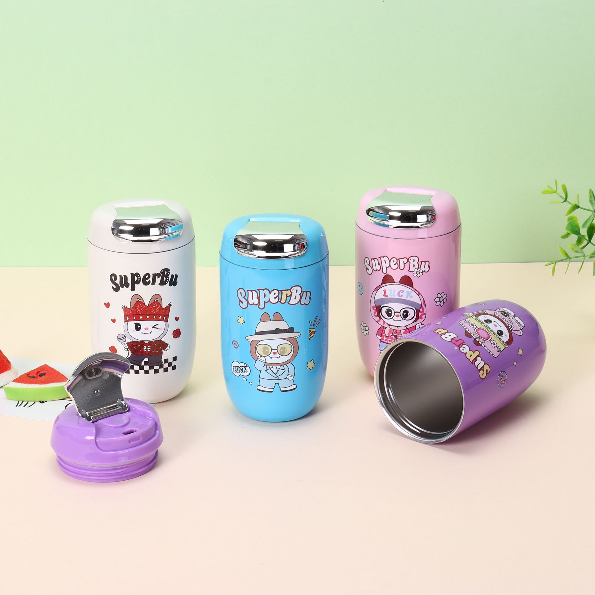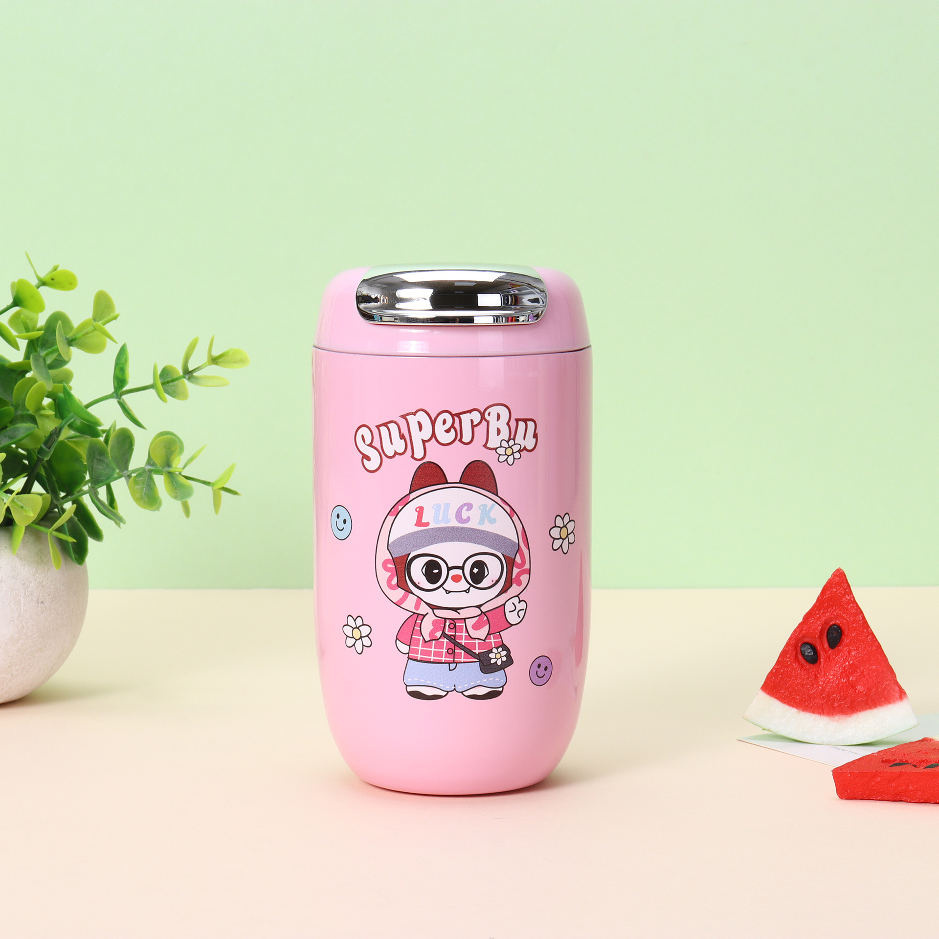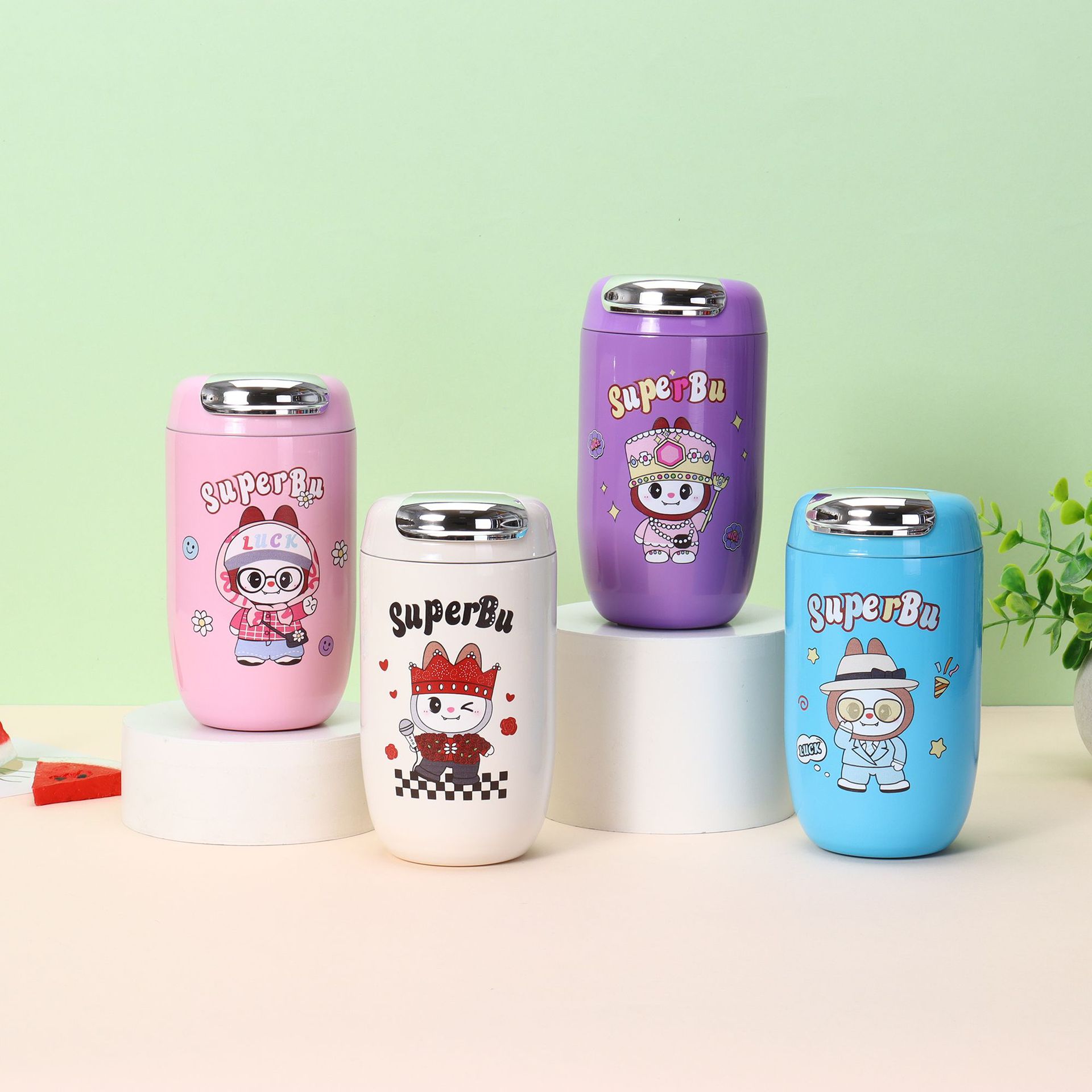 새로운 고급스러운 만화 GD 소녀 워터 컵 316 스테인레스 스틸 절연 컵 휴대용 야외 커피 컵 도매