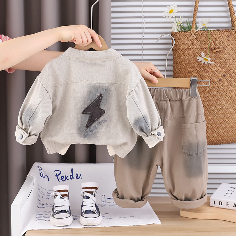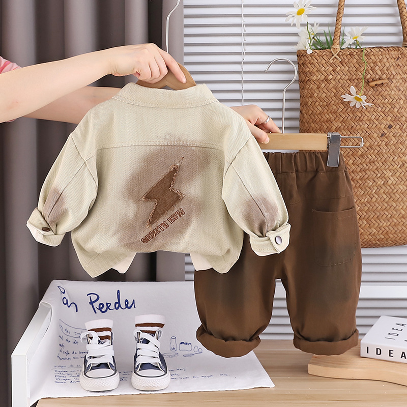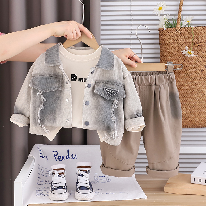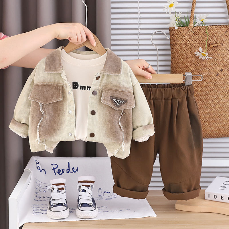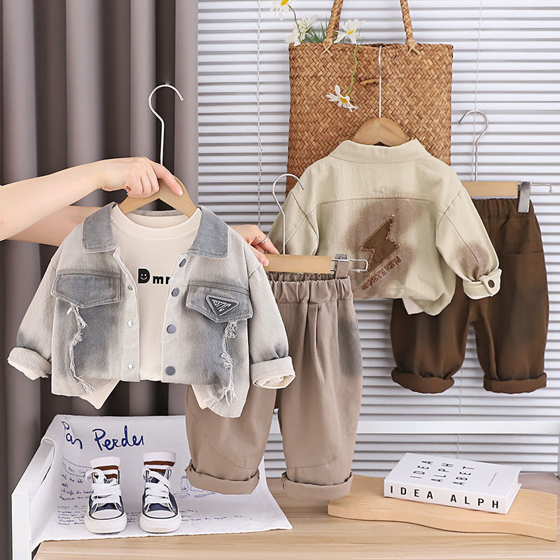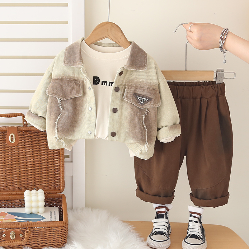 트렌디 베이비웨어 2025 새로운 스타일의 타이 염색 재킷 서양식 의류 베이비 봄, 가을 소년 캐주얼 3 피스 세트