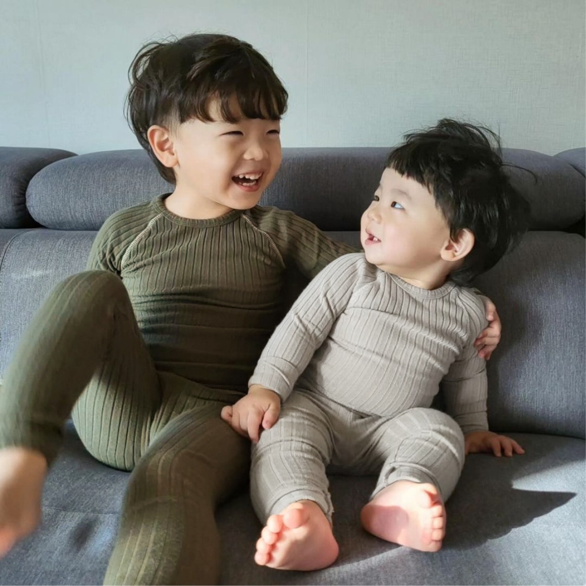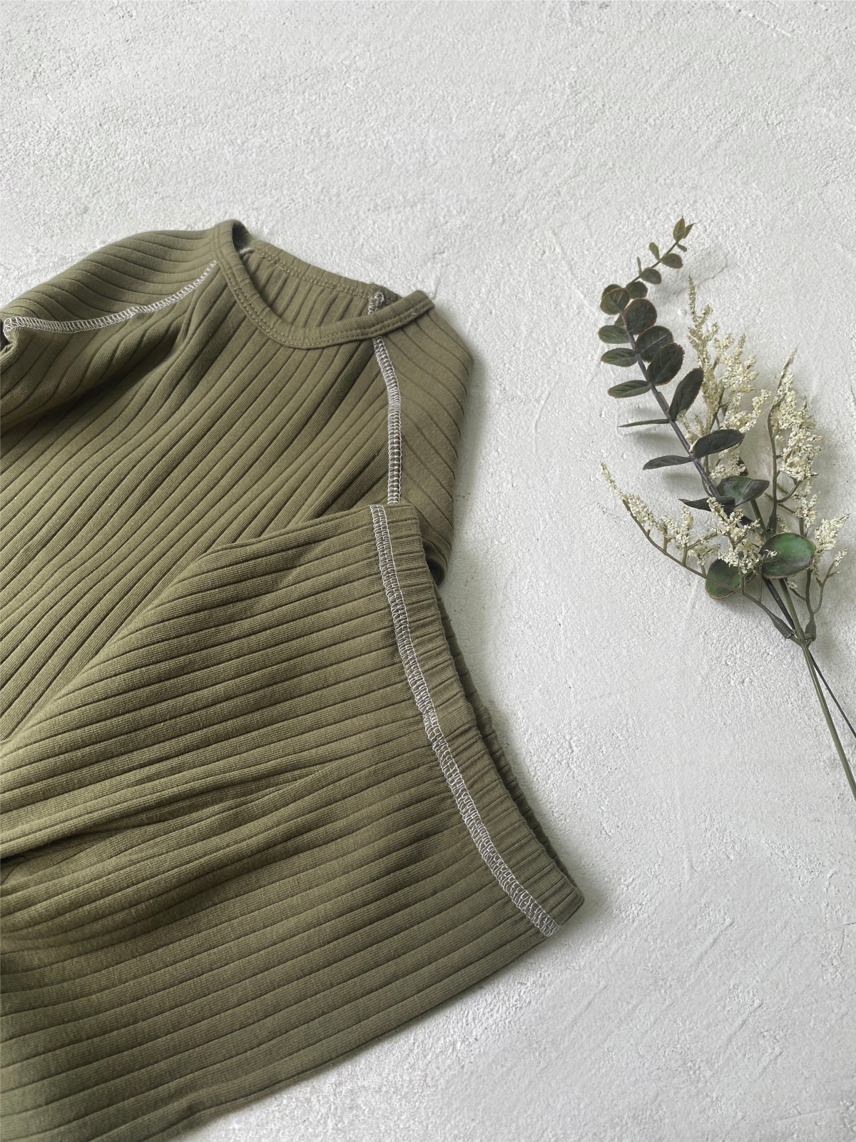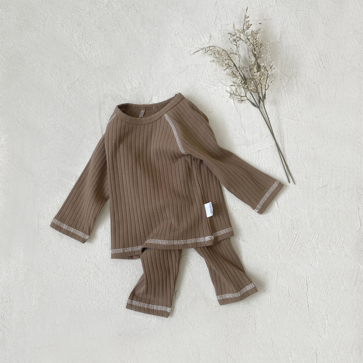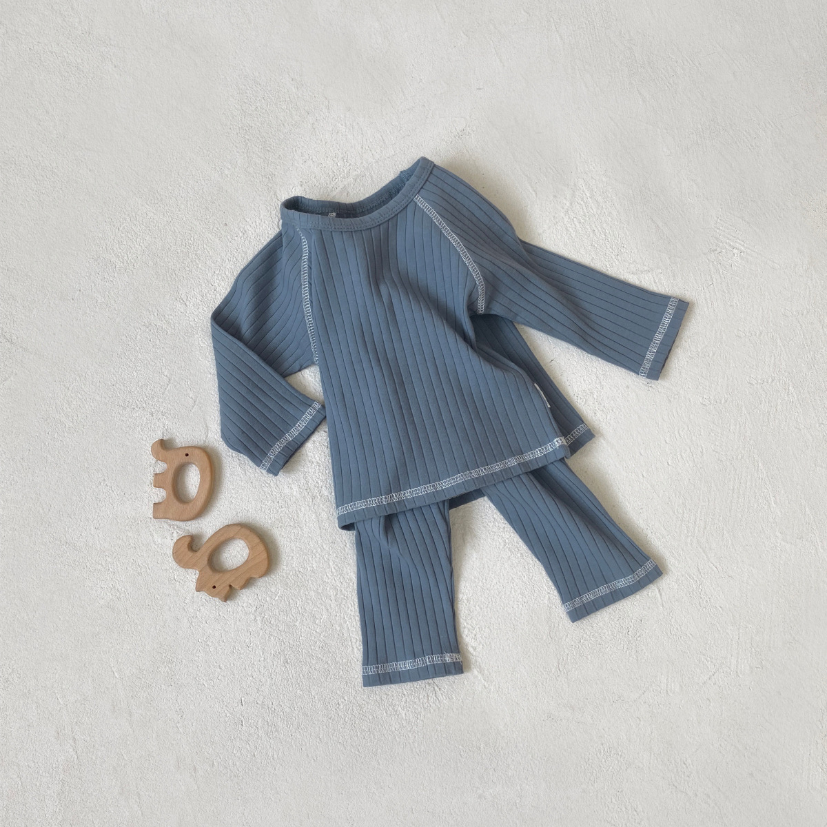 2025 가을 베이비 클래스 A 부드럽고 찰랑이는 두꺼운 솔리드 컬러 두꺼운 스트레치 티셔츠 탑 + 바닥 세트 잠옷스토어 가기