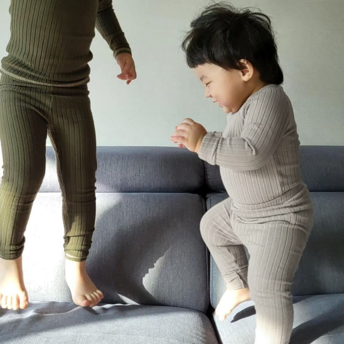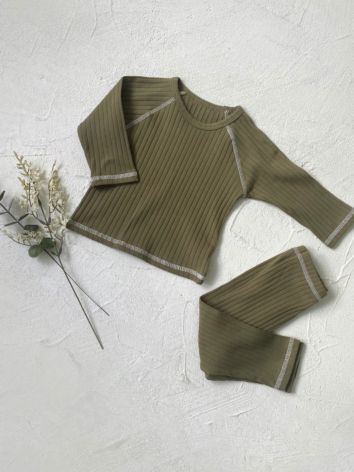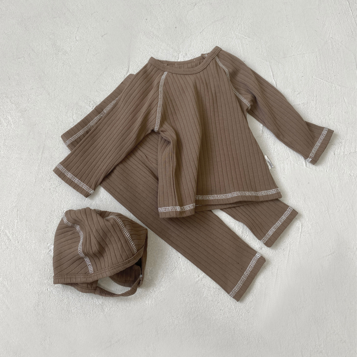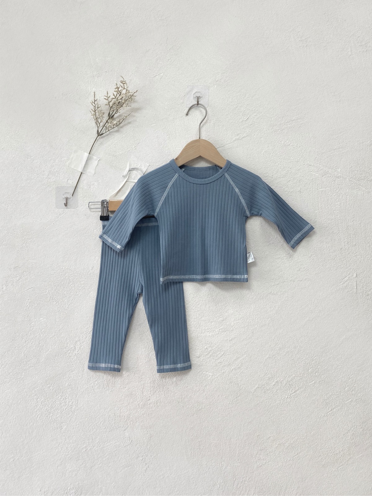 2025 가을 베이비 클래스 A 부드럽고 찰랑이는 두꺼운 솔리드 컬러 두꺼운 스트레치 티셔츠 탑 + 바닥 세트 잠옷스토어 가기