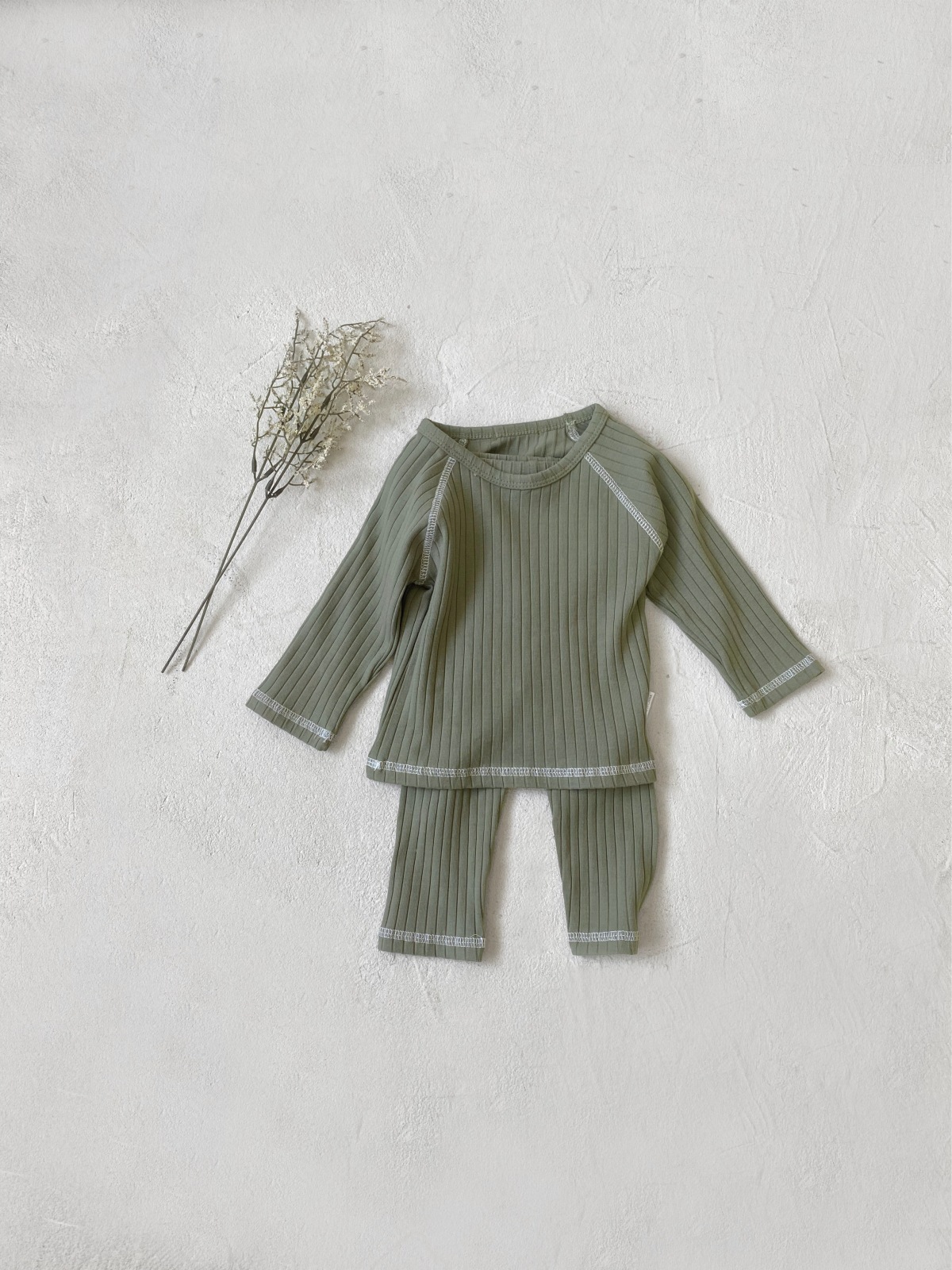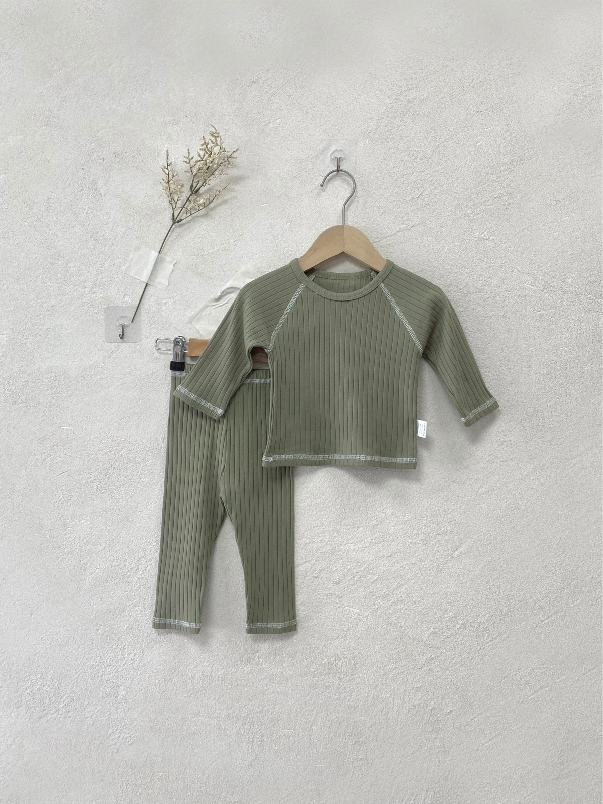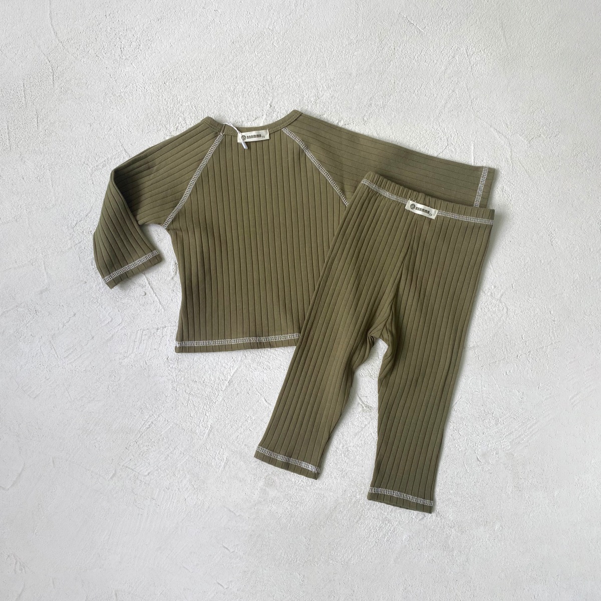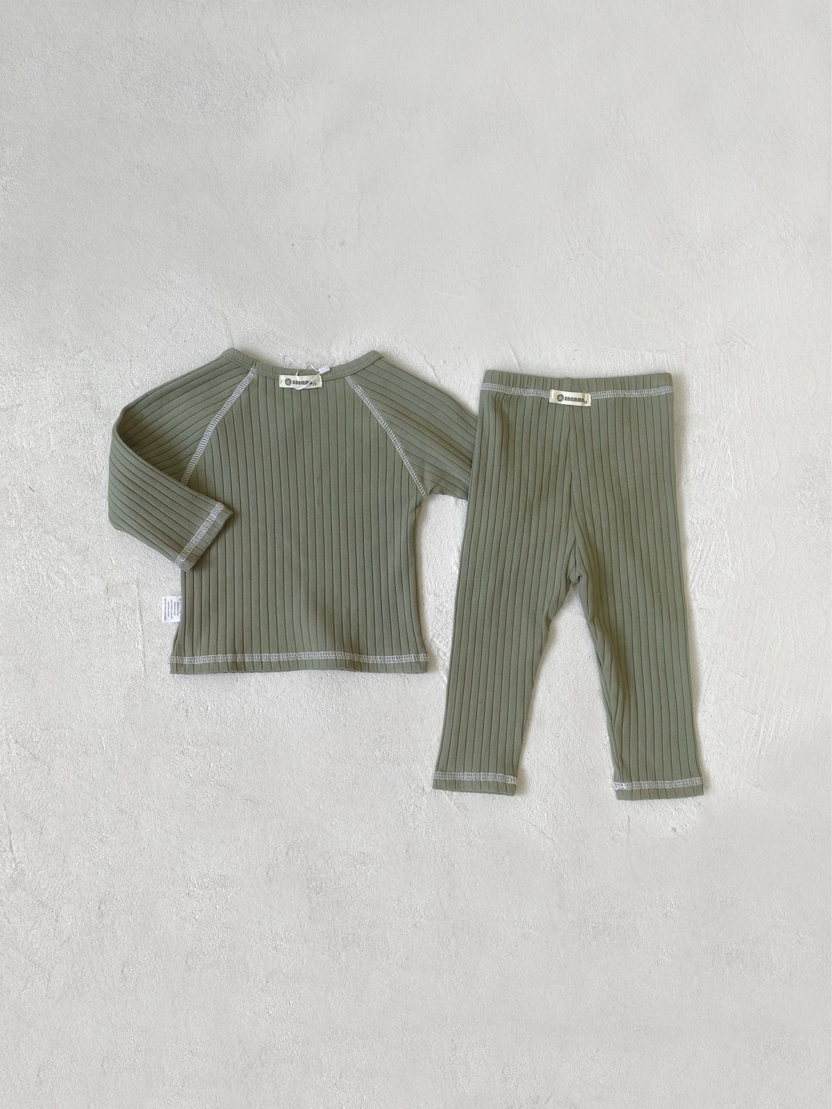 2025 가을 베이비 클래스 A 부드럽고 찰랑이는 두꺼운 솔리드 컬러 두꺼운 스트레치 티셔츠 탑 + 바닥 세트 잠옷스토어 가기