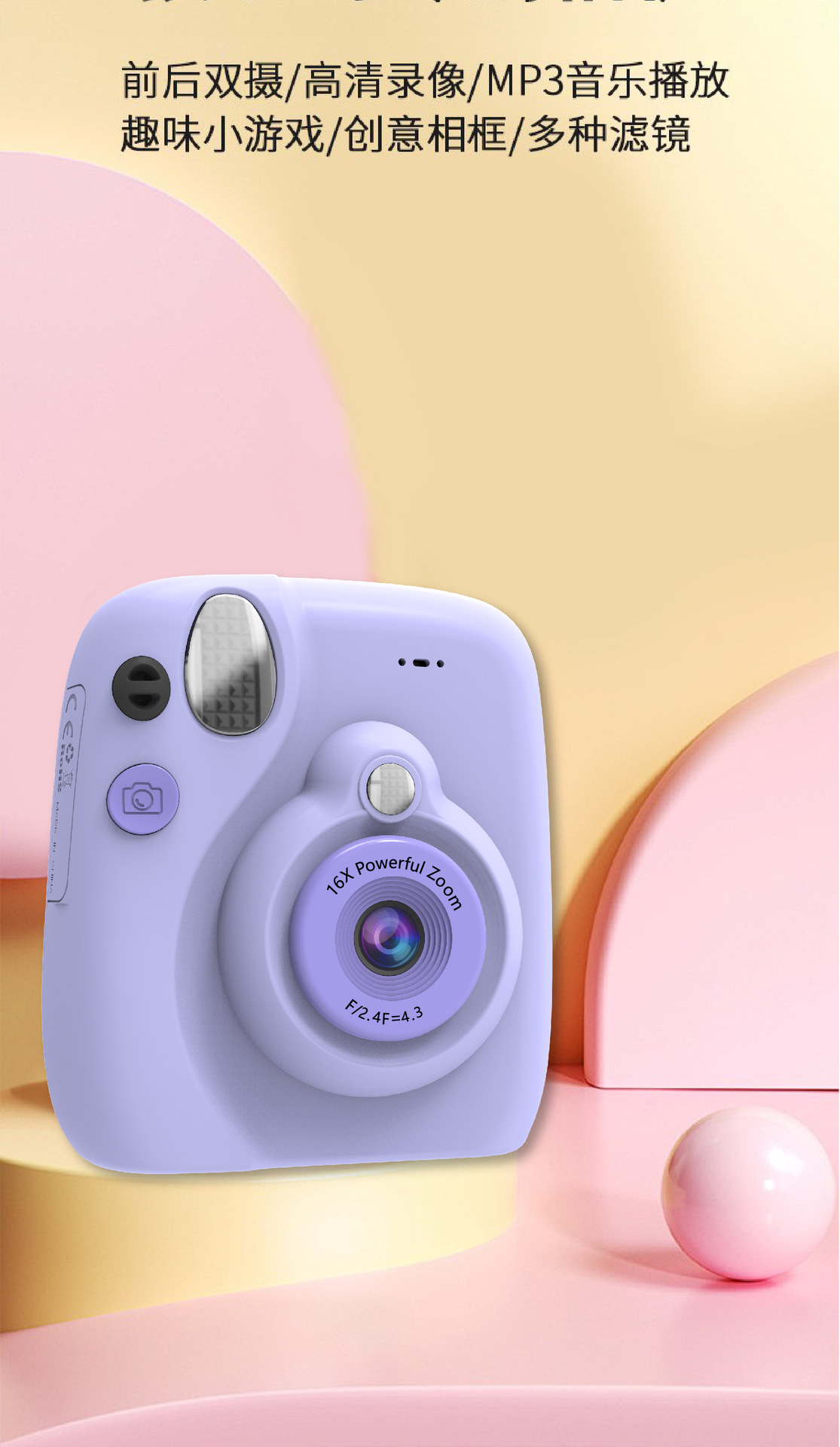 신제품 국경 간 폴라로이드 귀여운 복고풍 디지털 어린이 카메라 장난감 아기 만화 사진 디지털 카메라