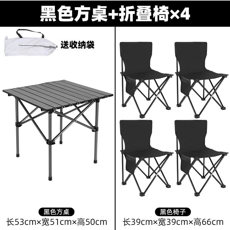 • 53CM 블랙 사각 테이블 + 블랙 접이식 의자 4개 + 수납가방
