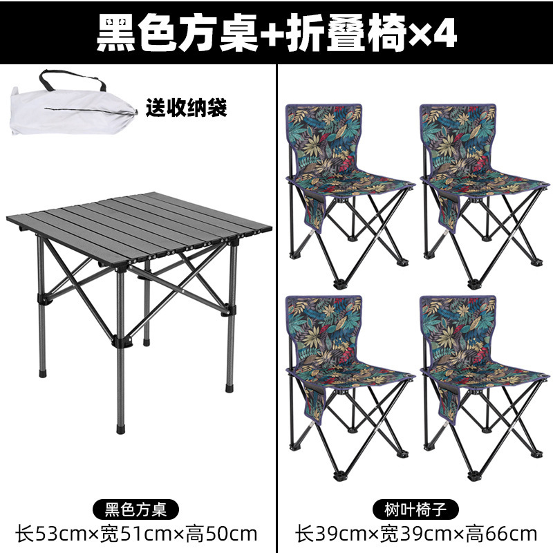• 53CM 블랙 스퀘어 테이블 + 블루 단풍잎 접이식 의자 4개 + 수납가방