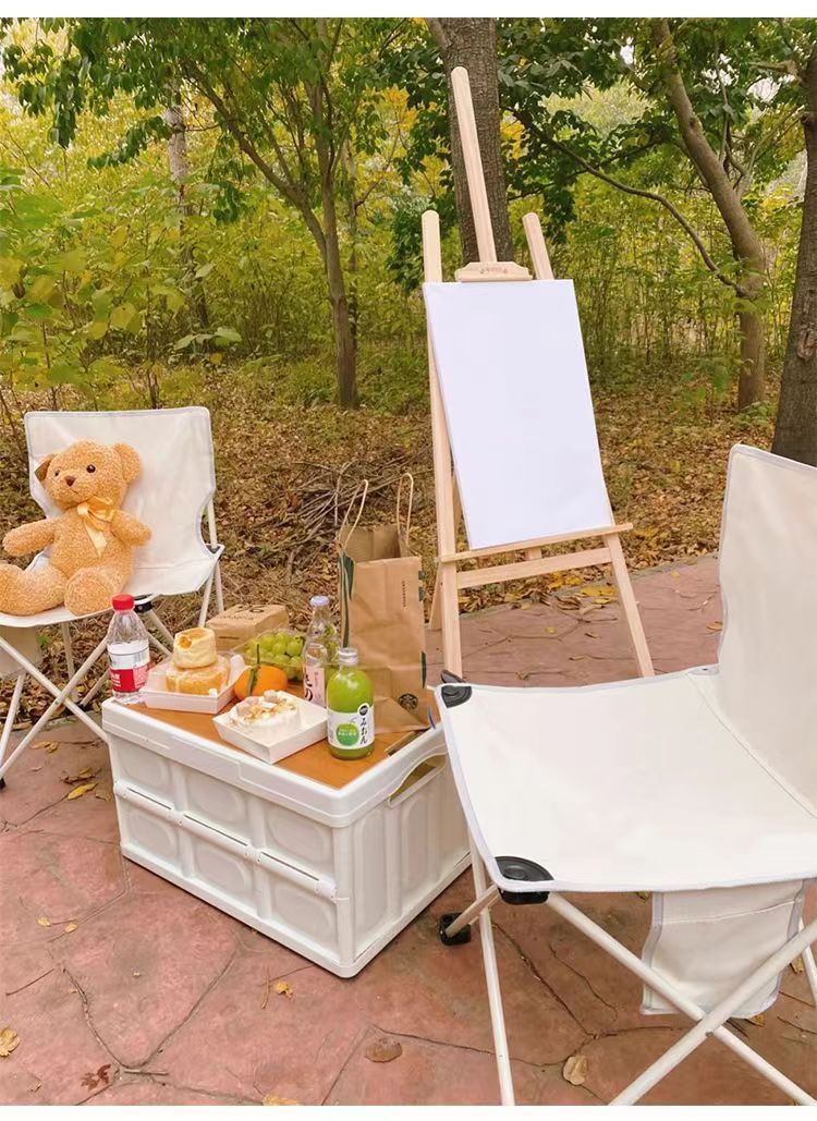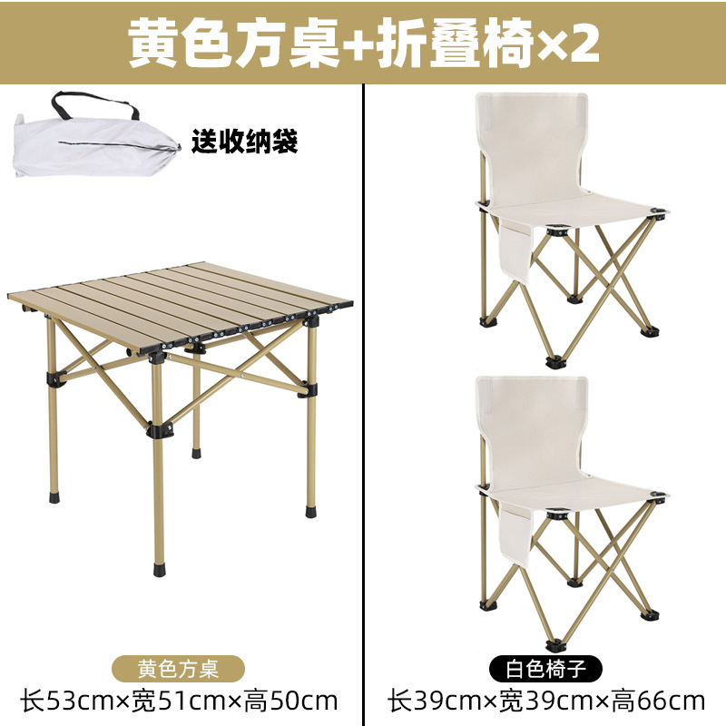 • 53CM 노란색 사각형 테이블 + 흰색 접이식 의자 2개 + 수납 가방