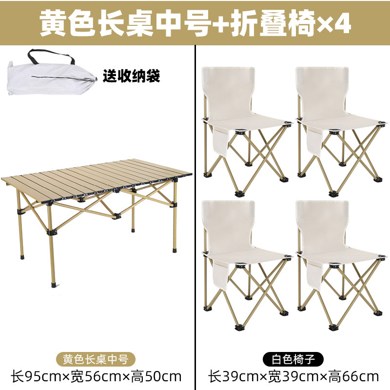 • 95CM 노란색 긴 테이블 + 흰색 접이식 의자 4개 + 수납 가방