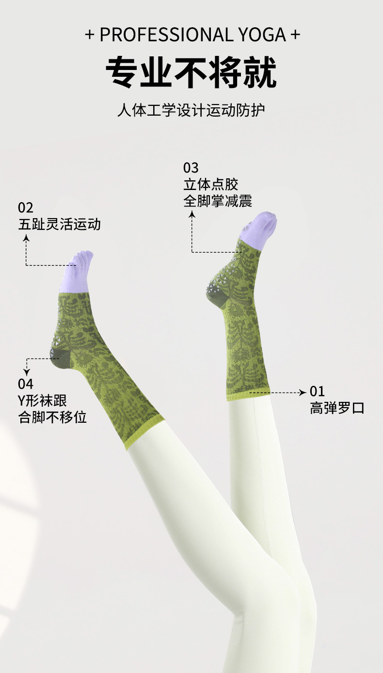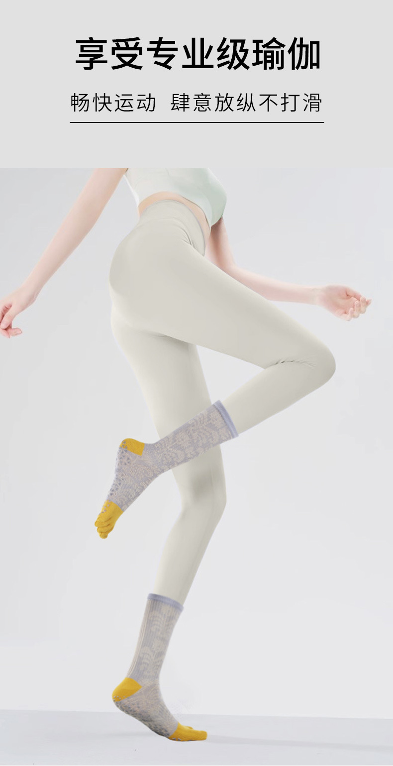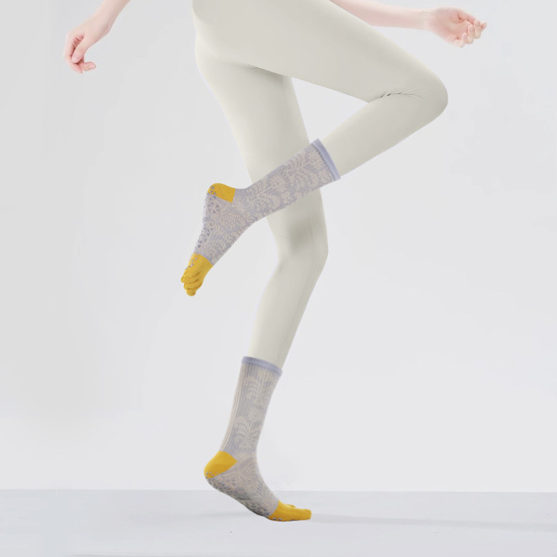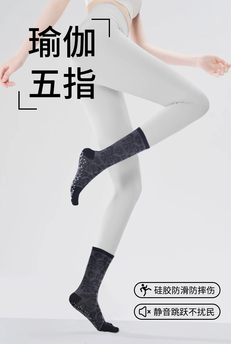 요가 양말 여성용 겨울 미끄럼 방지 전문가용 다섯 손가락 양말 중간 길이 분리형 실내 필라테스 전용 스포츠 피트니스 양말스토어 가기