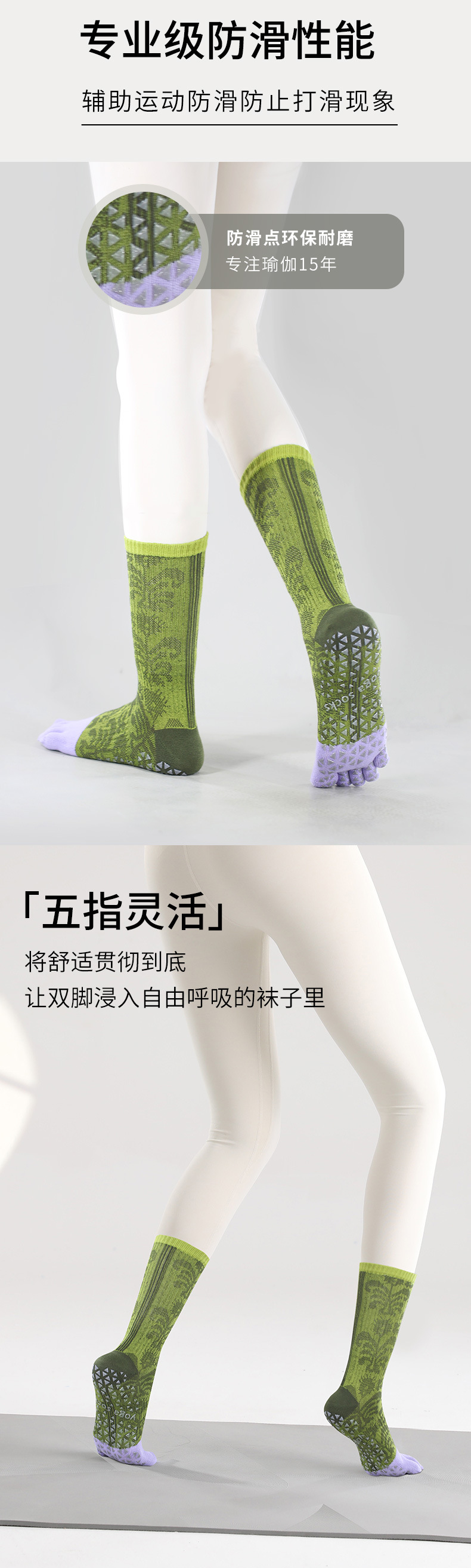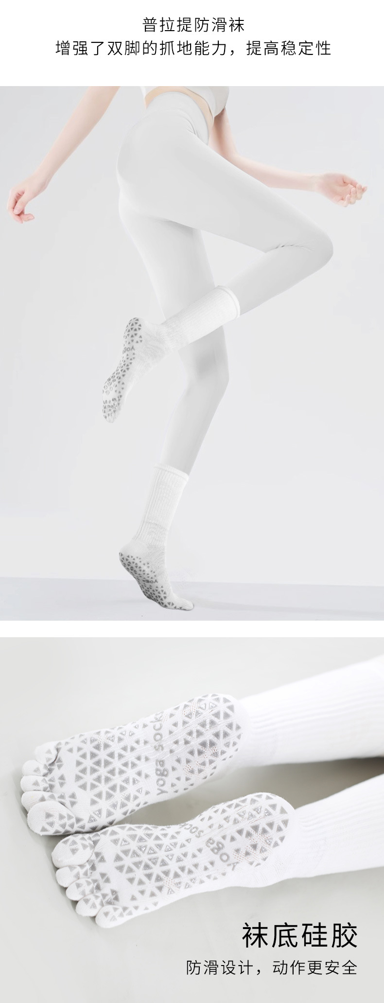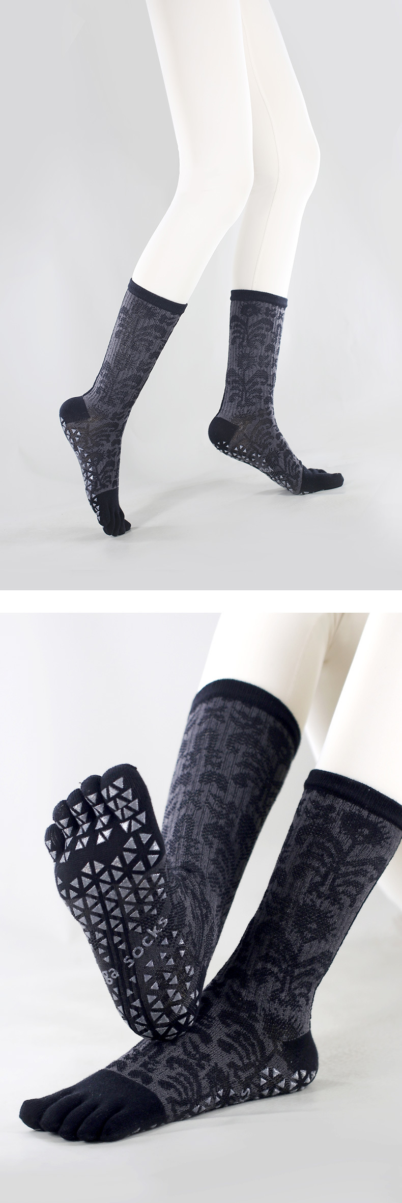 요가 양말 여성용 겨울 미끄럼 방지 전문가용 다섯 손가락 양말 중간 길이 분리형 실내 필라테스 전용 스포츠 피트니스 양말스토어 가기