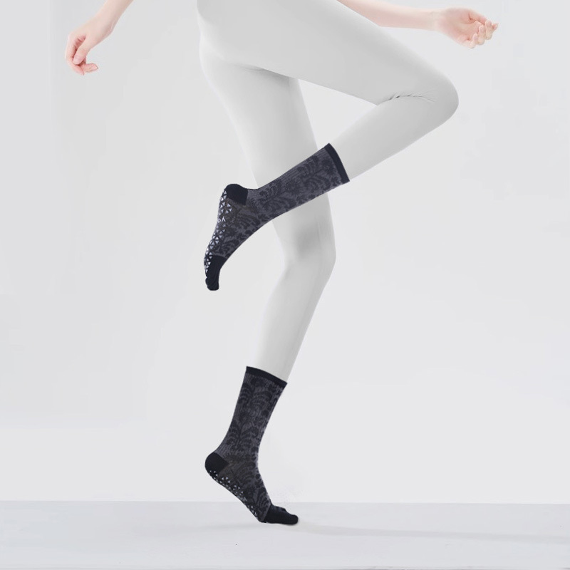 요가 양말 여성용 겨울 미끄럼 방지 전문가용 다섯 손가락 양말 중간 길이 분리형 실내 필라테스 전용 스포츠 피트니스 양말