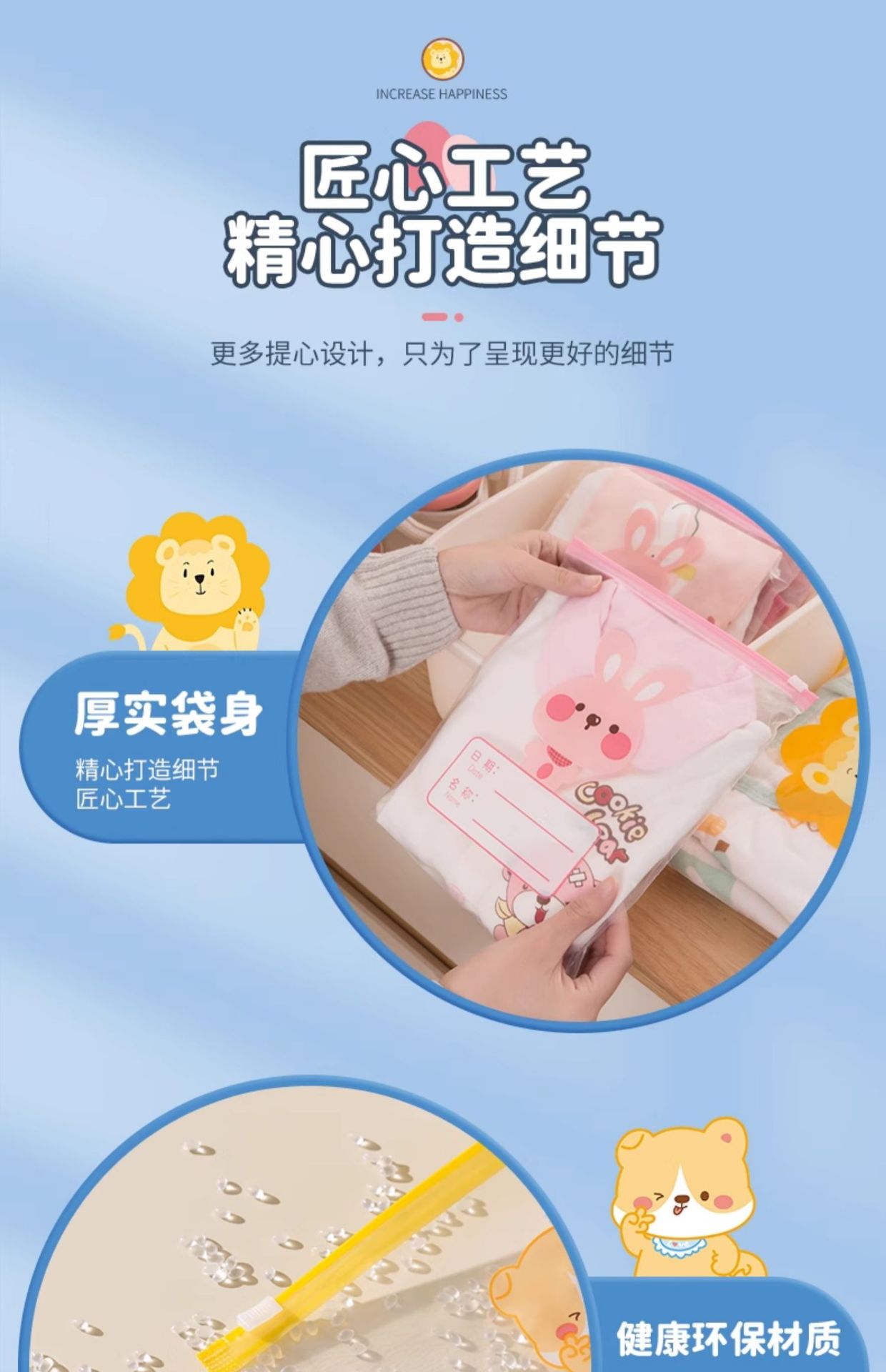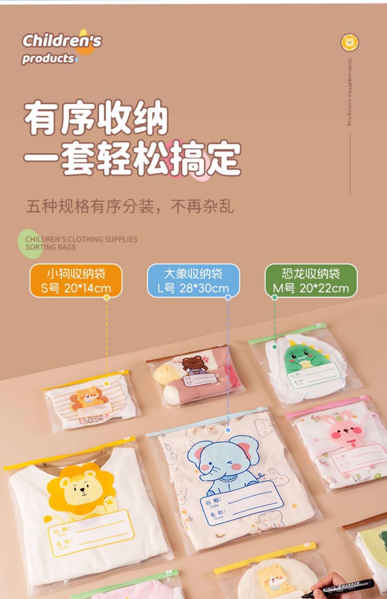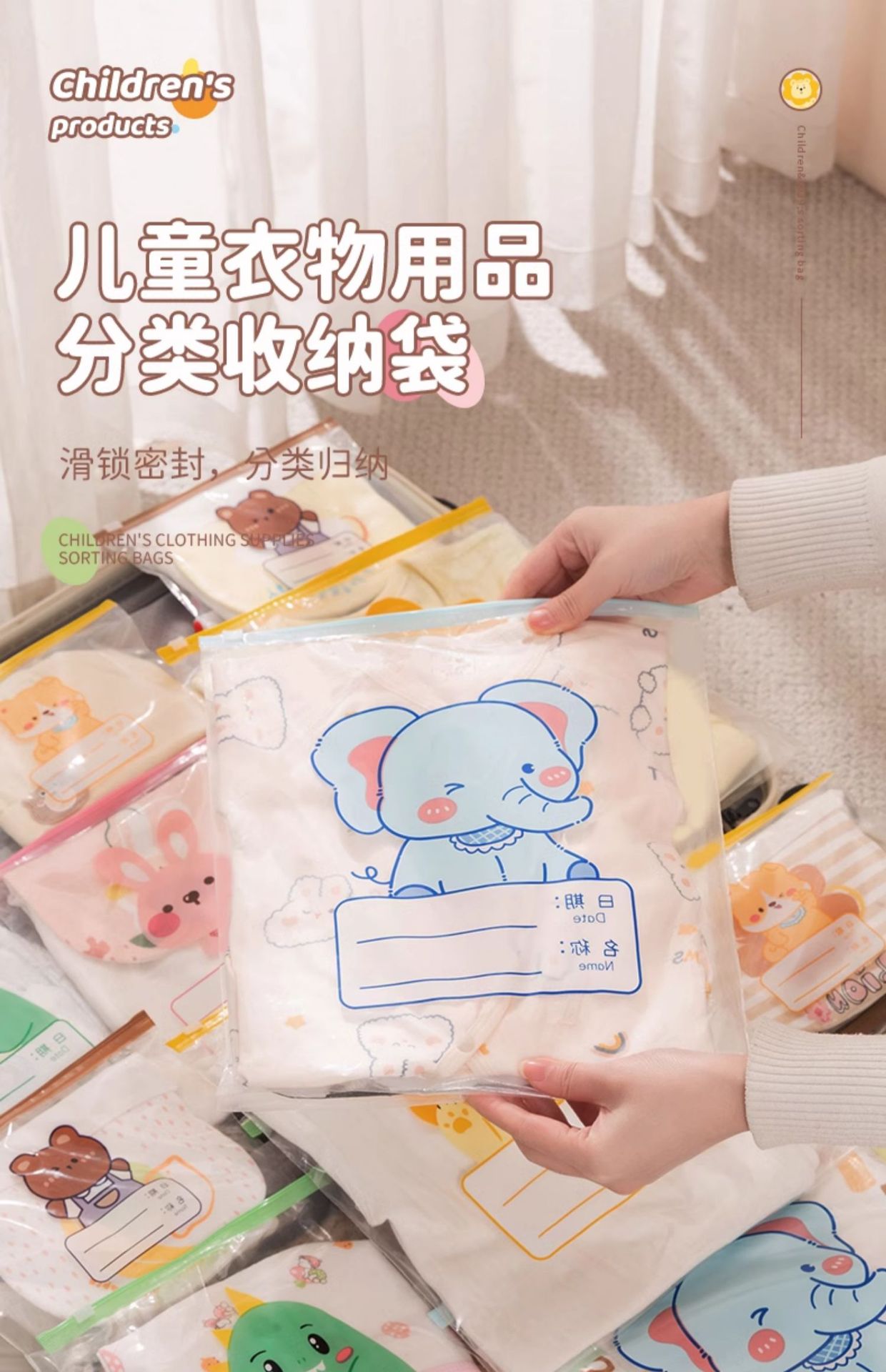 유치원 옷 보관 가방, 아기 유치원 어린이 의류 밀봉 지퍼 가방, 두꺼운 방진 작은 가방스토어 가기