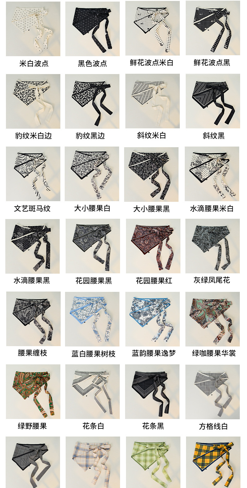 25가지 새로운 스타일의 레이스업 삼각 스카프, 캐슈넛 레오파드 프린트 스커트, 여성용 능직 스카프, 한국식 복고풍 숄 및 스카프 액세서리