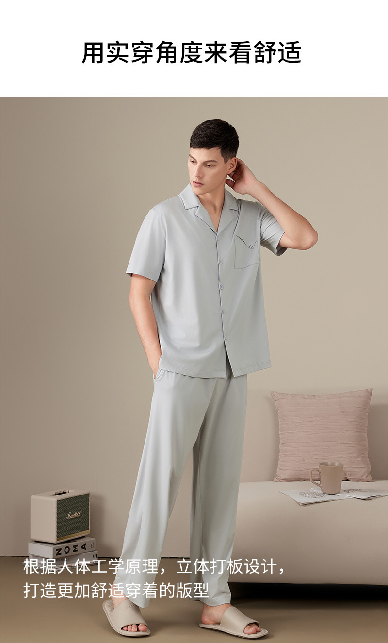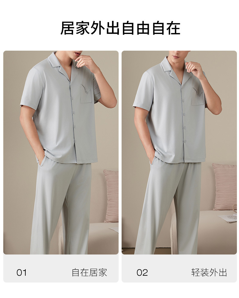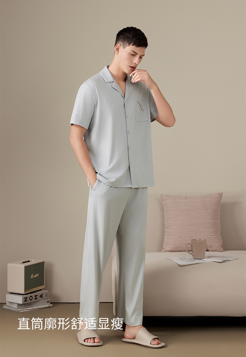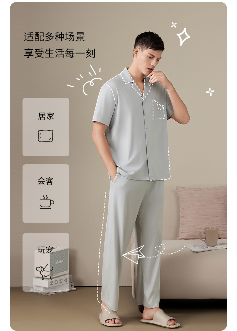 2025 새로운 여름 남성 잠옷 반팔 바지 텐셀 모달 코튼 홈웨어 세트 봄 여름 잠옷스토어 가기
