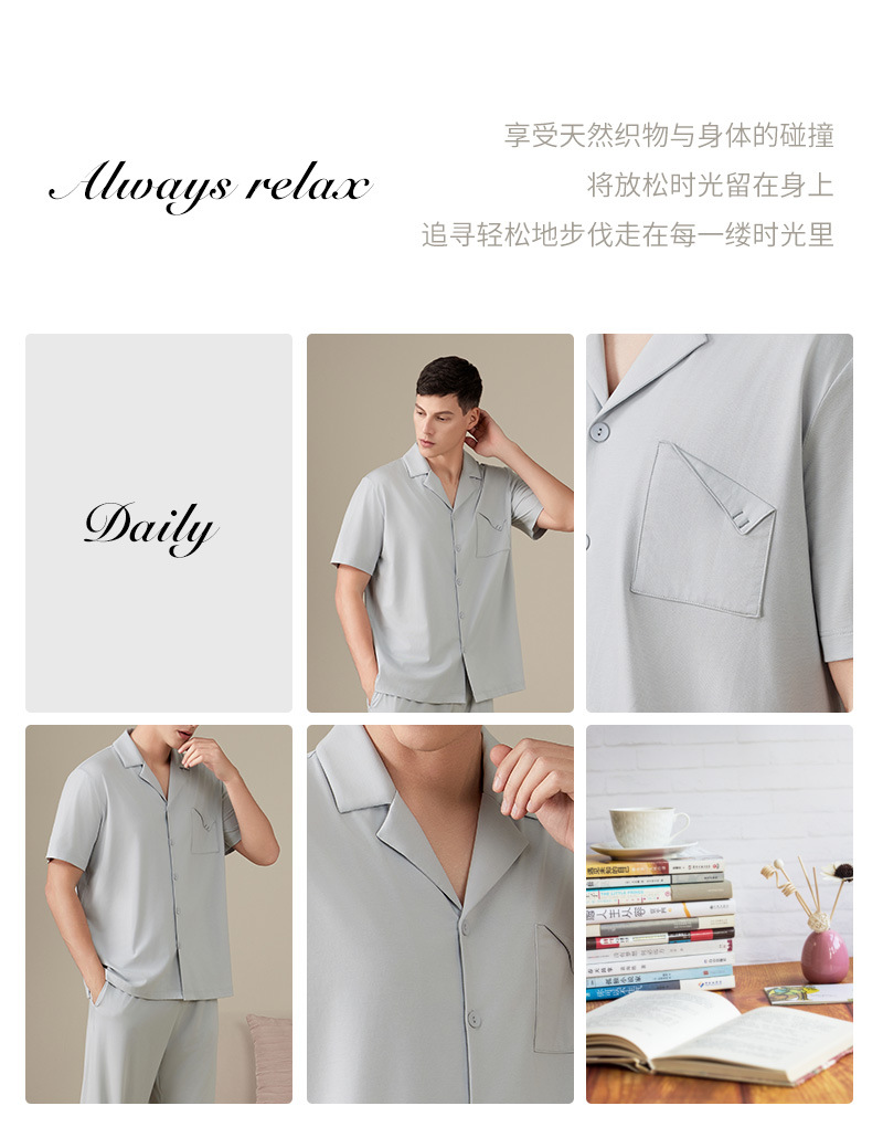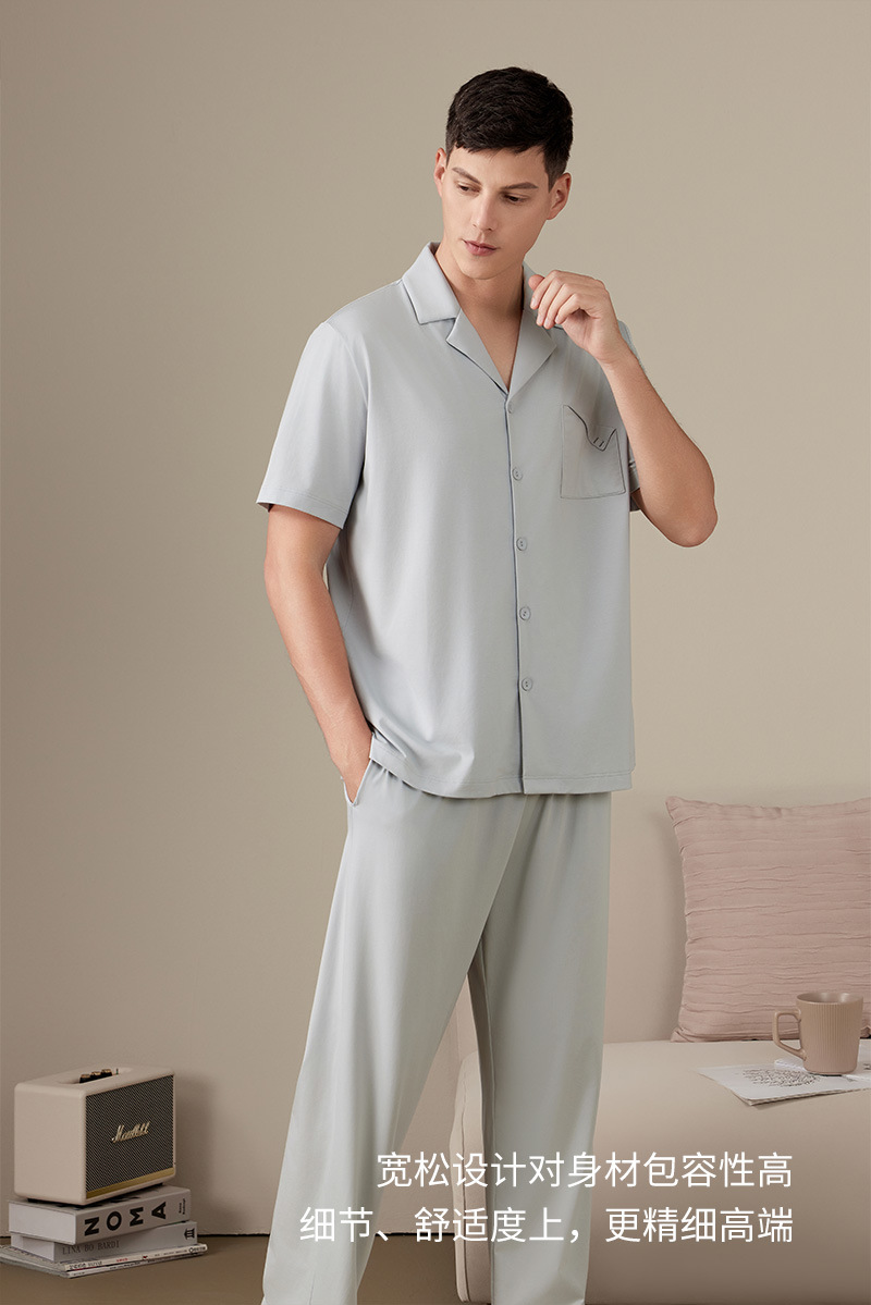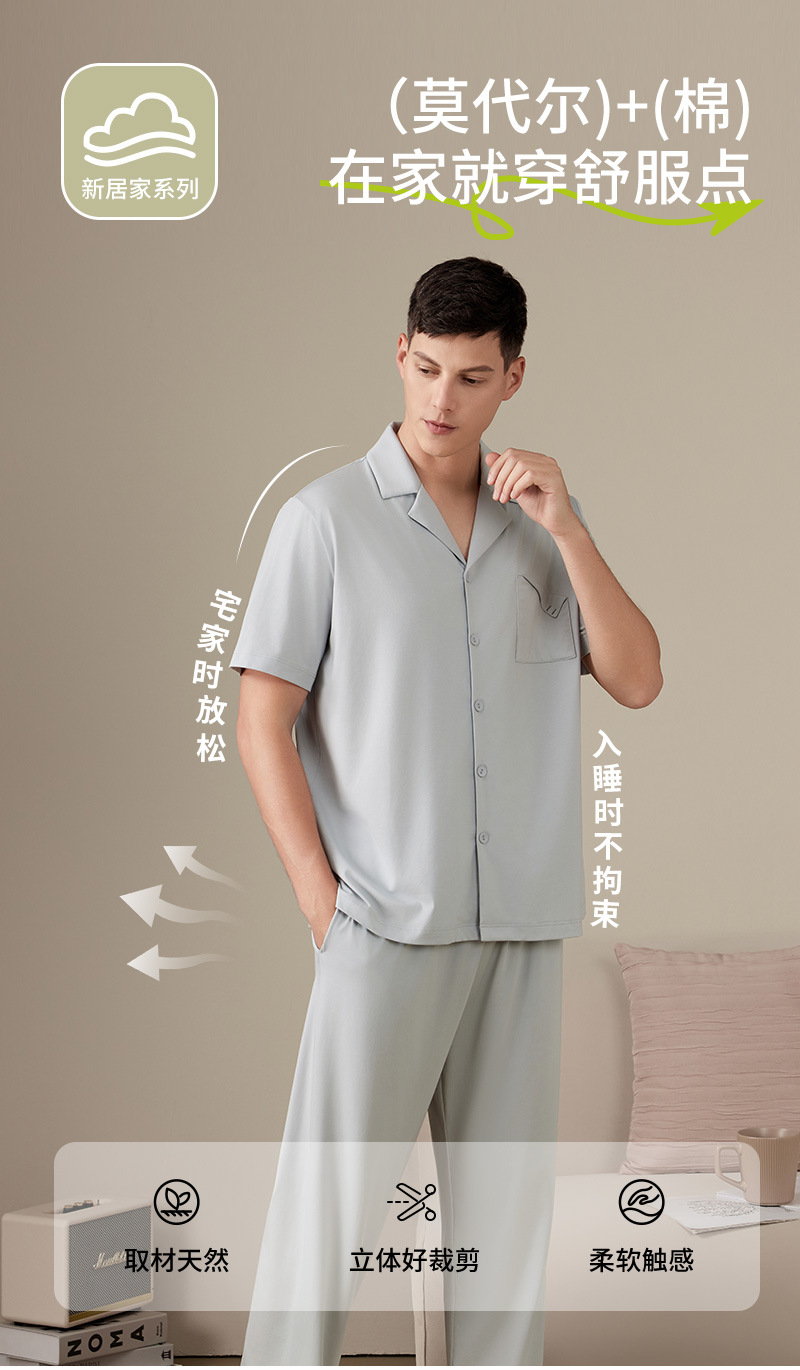 2025 새로운 여름 남성 잠옷 반팔 바지 텐셀 모달 코튼 홈웨어 세트 봄 여름 잠옷스토어 가기