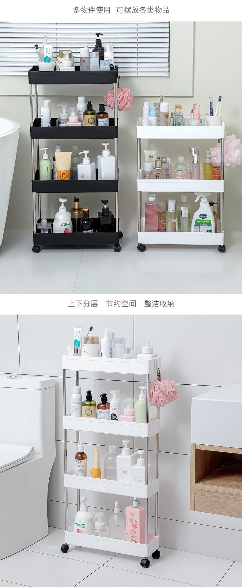 스토리지 랙 바닥 스탠딩 욕실 스토리지 랙 욕실 스토리지 다층 스토리지 랙 모바일 거실 주방 스토리지