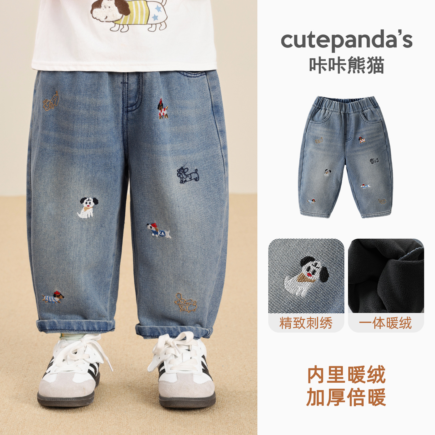 카카 팬더 남아용 청바지 여아용 바지 봄옷 봄가을 아동 캐주얼 바지 봄 아기옷 유행