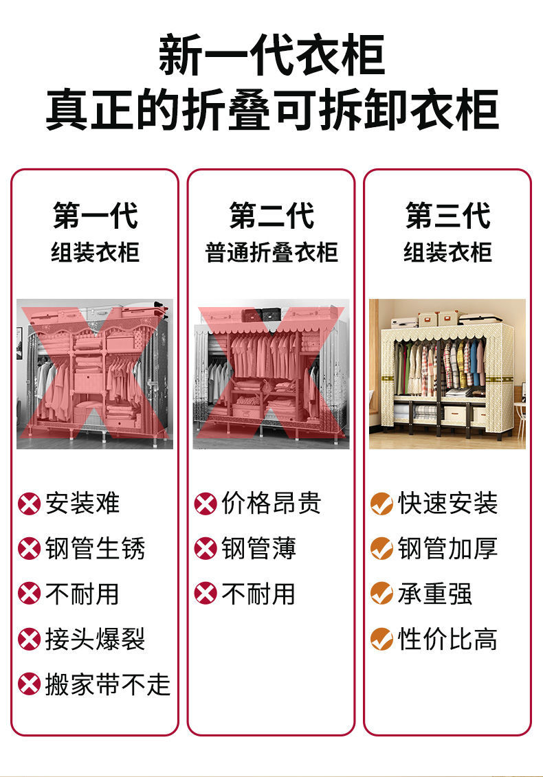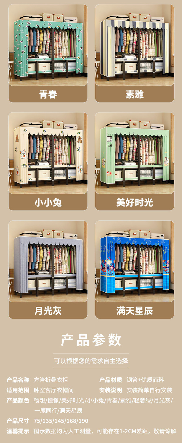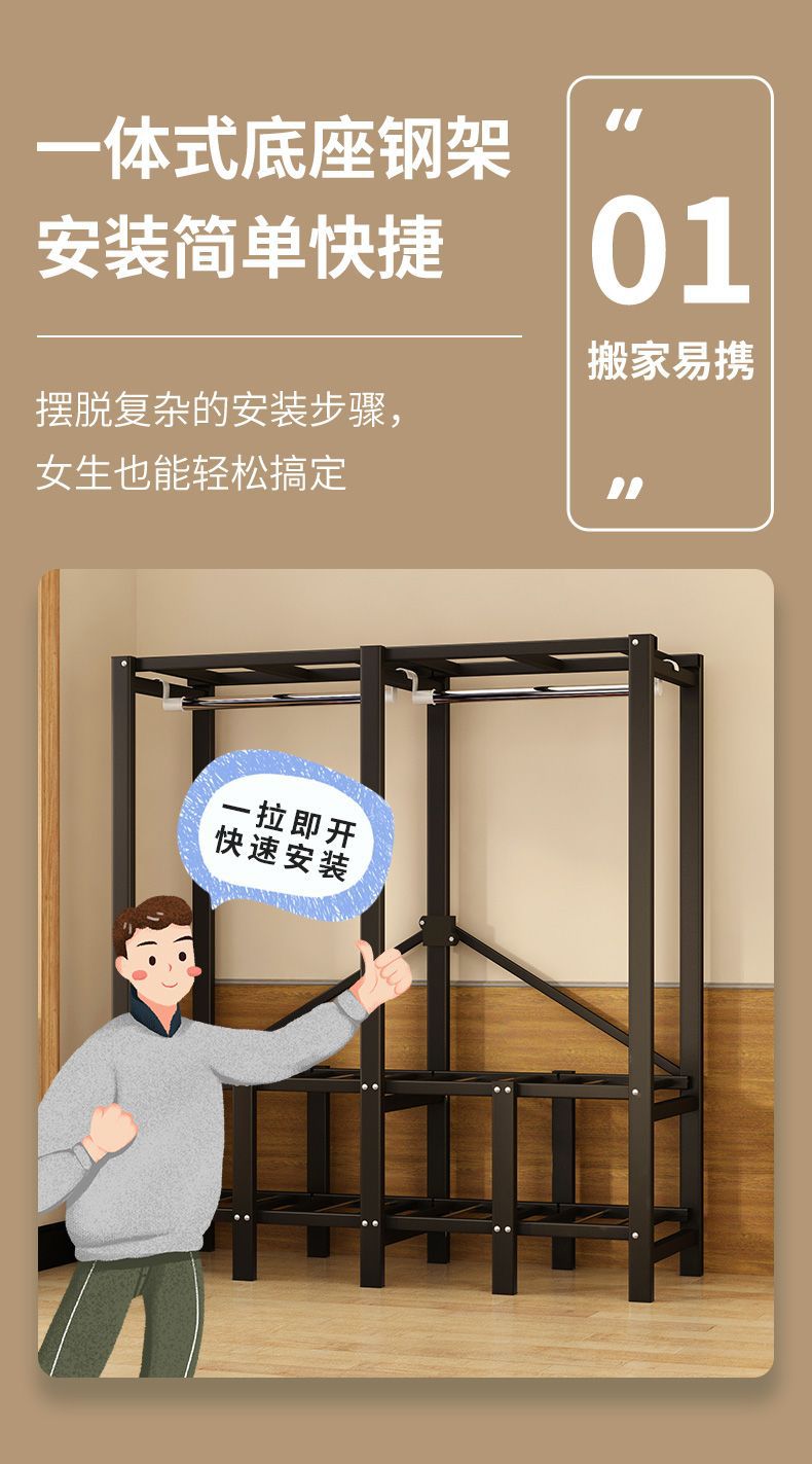 가정용 침실 임대실 전체 강철 프레임 강력하고 내구성이 뛰어난 옷장 설치가 필요 없는 옷장 두꺼운 접이식 간단한 천 옷장