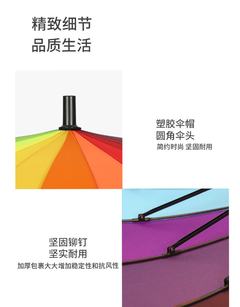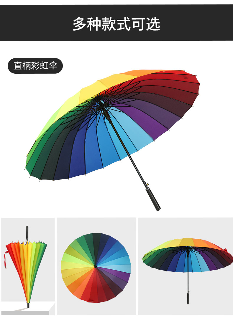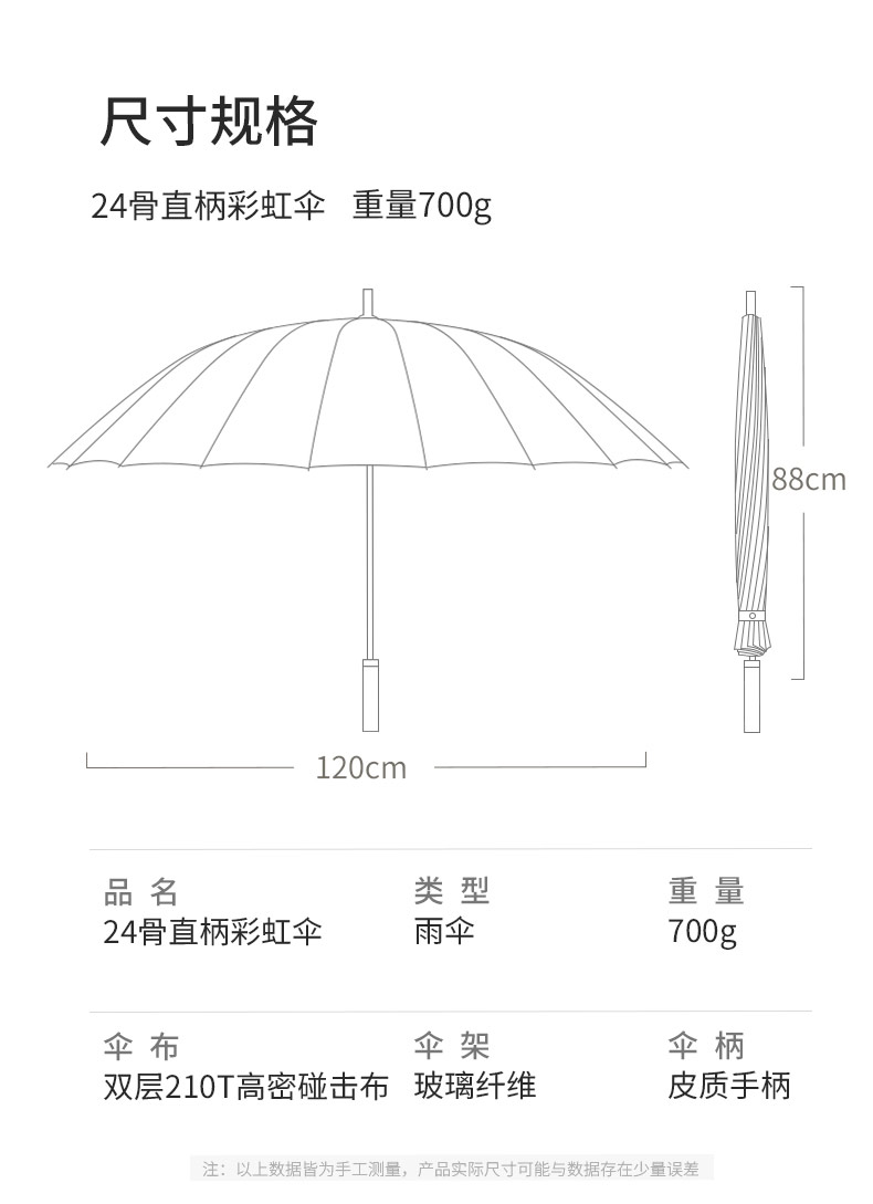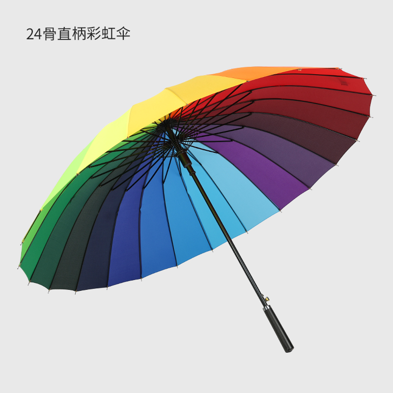 • 24본 가죽 스트레이트 핸들 레인보우 우산(뒷면에 천 커버 포함)