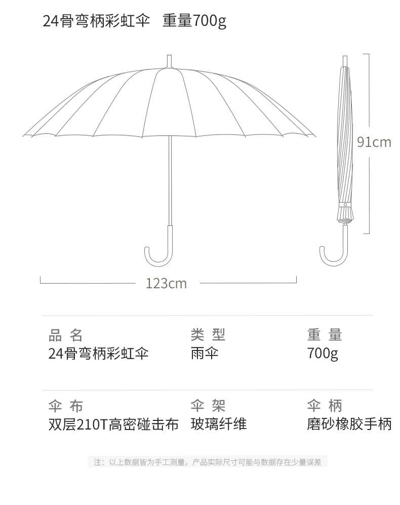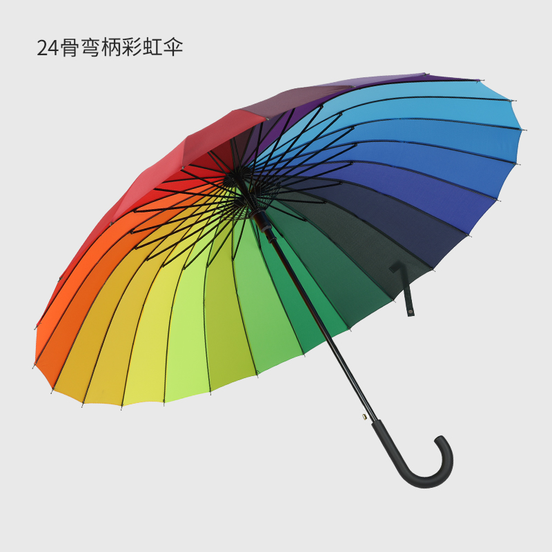 • 24본 곡선형 손잡이 무지개 우산(뒷면에 천 커버 포함)