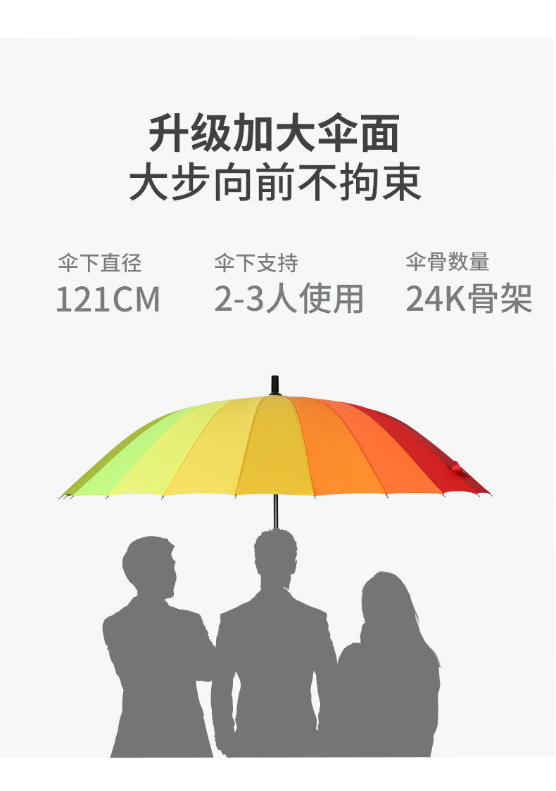 24본 자동 무지개 긴 손잡이 우산, 방풍 우산, 직선 우산, 남녀 공용 더블 방풍 우산